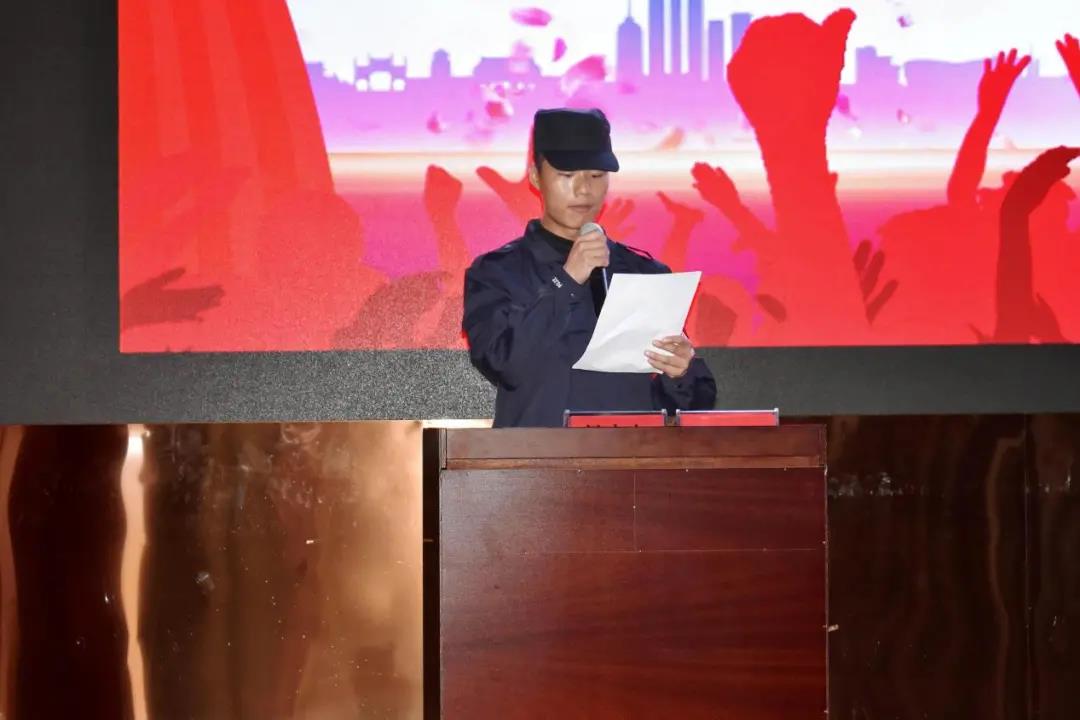会上,护校队代表杨昱驰同学进行了发言,护校队全体成员进行了集体宣誓,合唱了《强军战歌》。