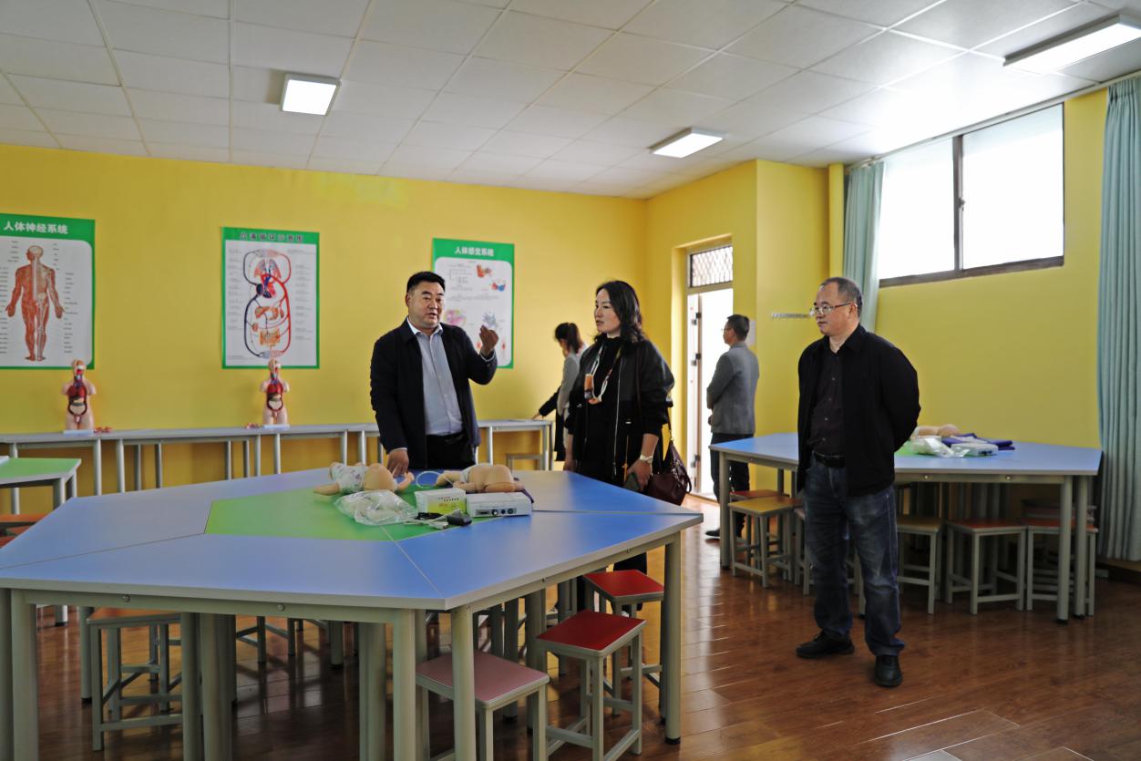 我校是在国家扶贫攻坚、大力发展民族教育和学前教育事业大背景下建立的。目前,学校在17所高校“组团式”对口支援下,学校发展规模不断壮大,人才培养体系逐步完善,学校教师教学创新团队入选国家级职业教育教师教学创新团队培育建设单位,王晓东向廖晓燕介绍到。随后,调研组一行参观了学前教育实训室,在学前教育系主任余成红的带领下,体验了奥尔夫乐器。