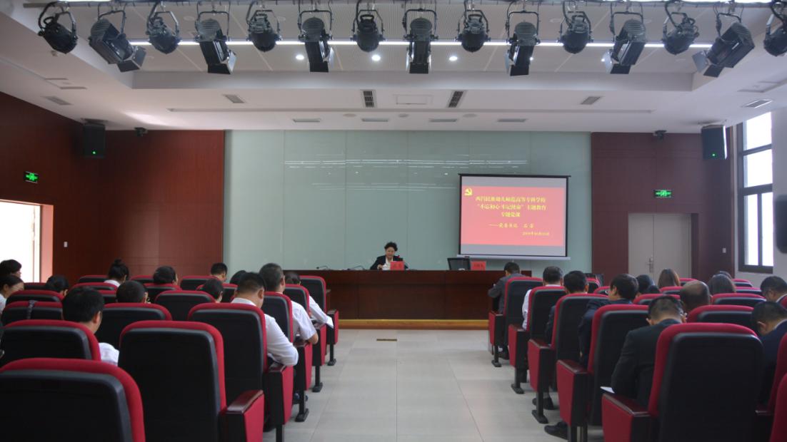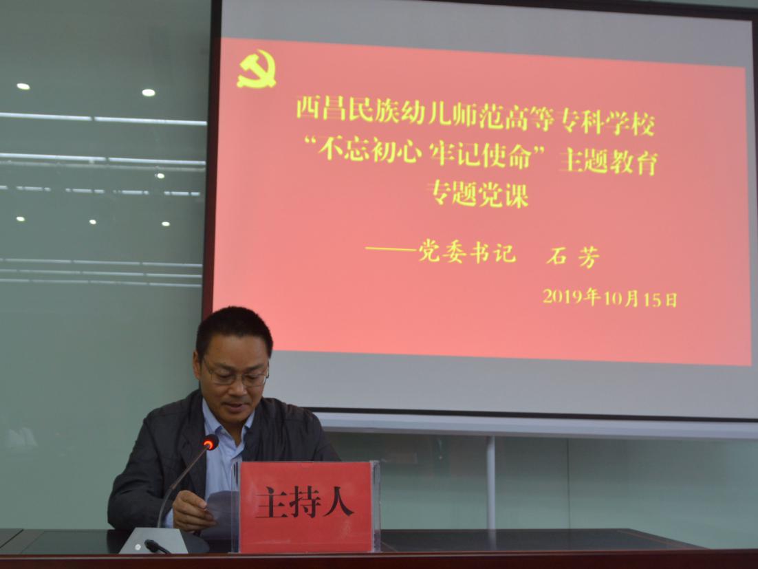 为深入学习宣传贯彻习近平新时代中国特色社会主义思想,深入推进“不忘初心、牢记使命”主题教育,10月15日下午,学校党委书记石芳在图书馆学术报告厅以《扛牢初心使命 践行责任担当——奋力谱写西幼发展新篇章》为题,讲授“不忘初心、牢记使命”主题教育专题党课。党课由学校党委副书记、校长赵波主持,全体教职工党员聆听了党课。