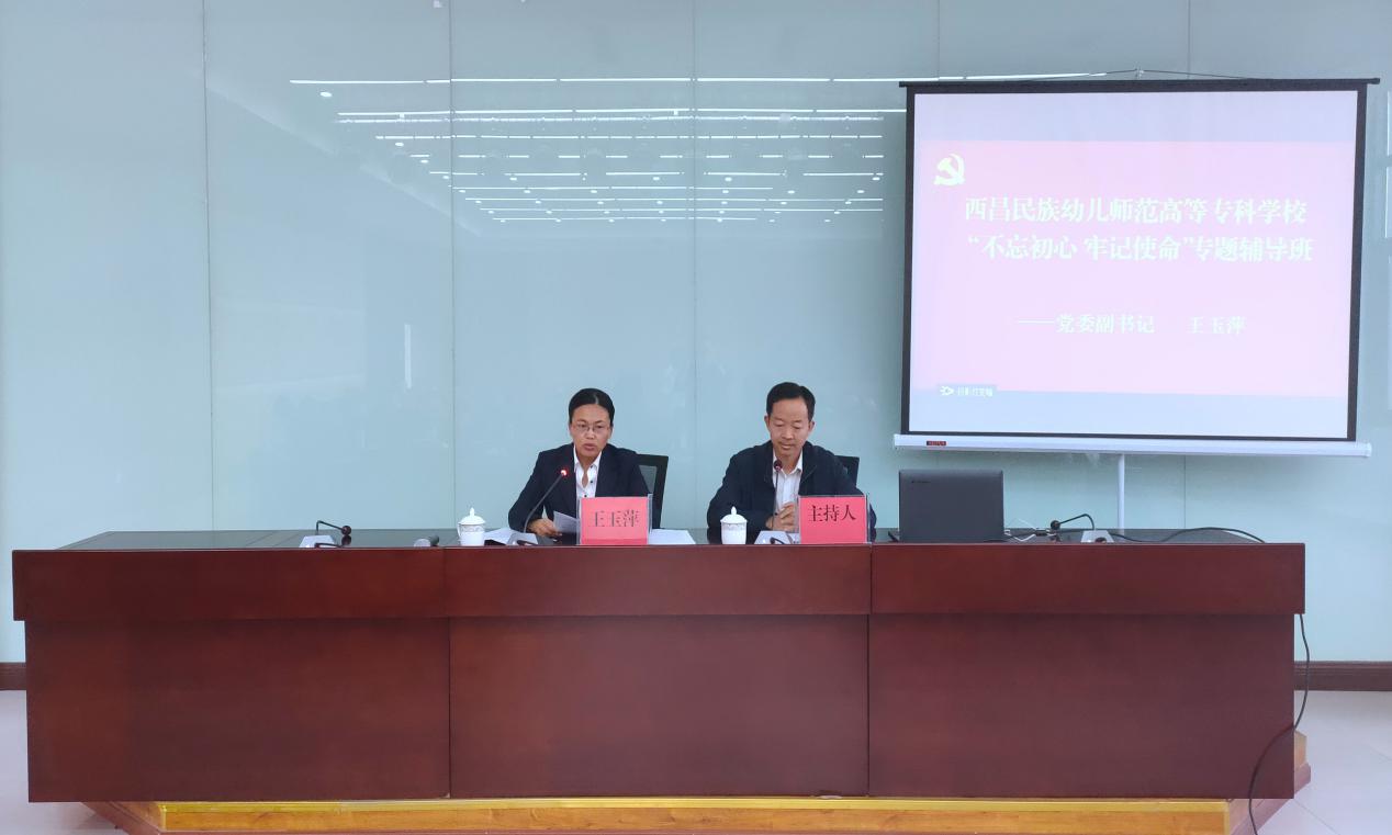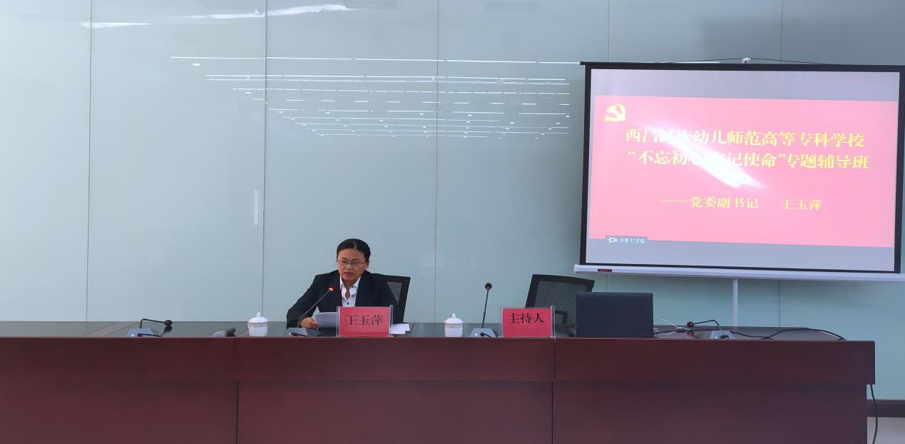 10月18日下午,学校党委副书记王玉萍在图书馆报告厅召开“不忘初心、牢记使命”专题辅导课,为全体教职工党员生动形象地讲授了新修订的《中国 共产党普通高等学校基层组织工作条例》。讲座由图书馆馆长廖德凯主持,全体教职工党员参加。