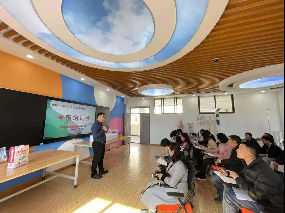 我校作为“1+X”证书认证试点学校,在学校党委的领导和支持下,学前教育系等相关部门严格按照相关文件精神,前期积极开展考核站点申报、学生报名、学习培训与模拟测试、考点建设与布置、考务组织管理、资料上传等工作。