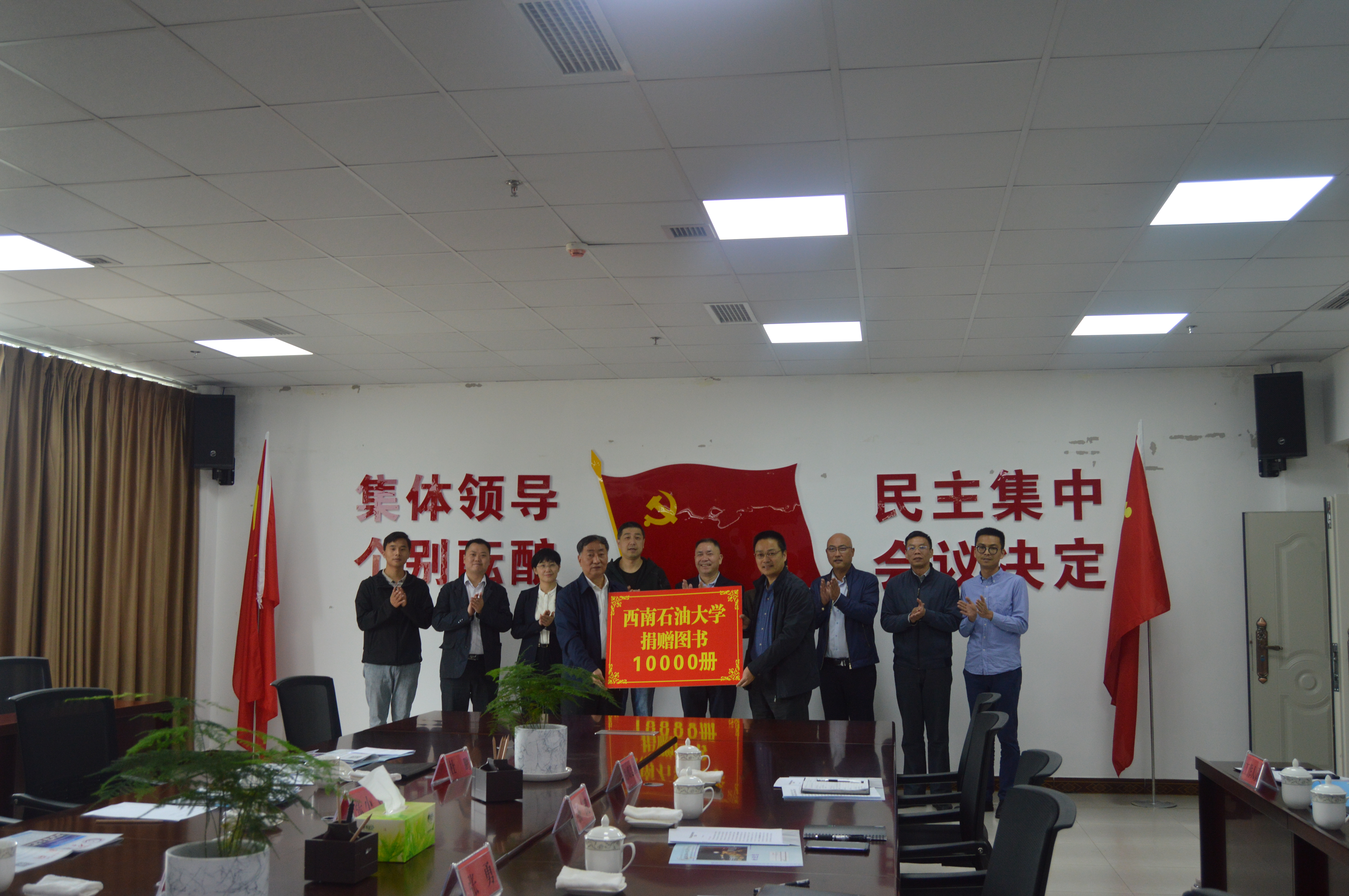 会议最后举行了图书捐赠仪式,赵波代表学校接受了西南石油大学捐赠的10000册图书。