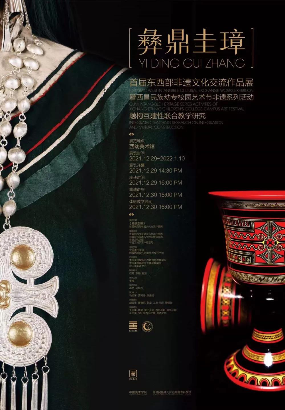 紧随建党百年华诞和中国 共产党第十九届中央委员会第六次全体会议顺利召开,我国全面开启了建设社会主义现代化国家的“新时代,新征程”。在凉山非遗产业和民族教育彭勃发展之时,在脱贫攻坚向乡村振兴翻开新篇章之际,2021年12月29日,由中国美术学院和西昌民族幼儿师范高等专科学校联合主办的“首届东西部非遗文化交流作品展”开幕仪式在西昌西幼美术馆隆重举行。