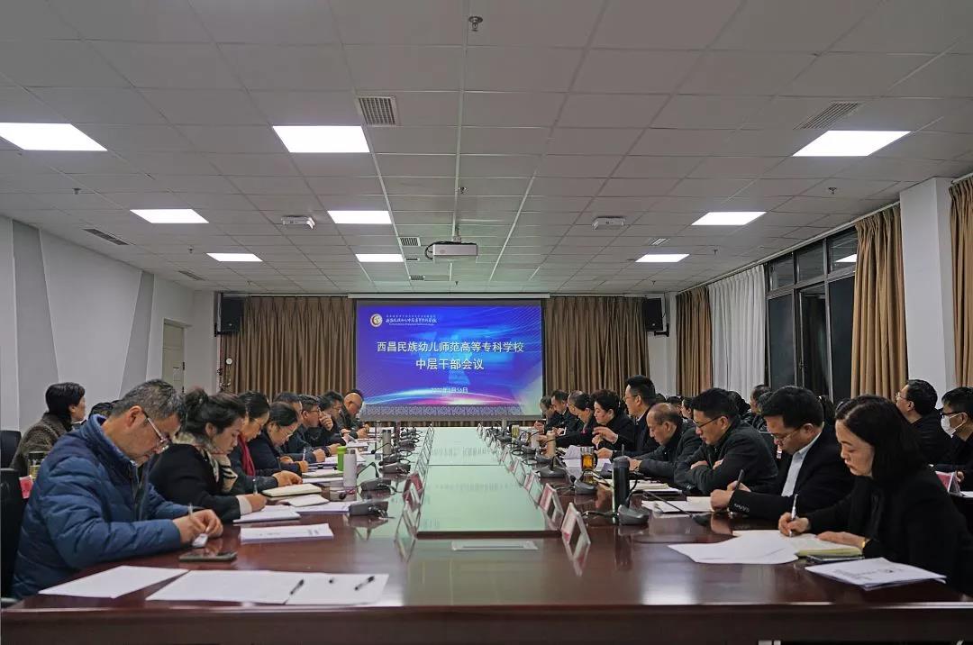 1月16日,西昌民族幼专中层干部会议在行政楼1508会议室召开。校领导、党委班子成员、中层以上干部参加会议。党委书记石芳主持会议并作总结讲话。
