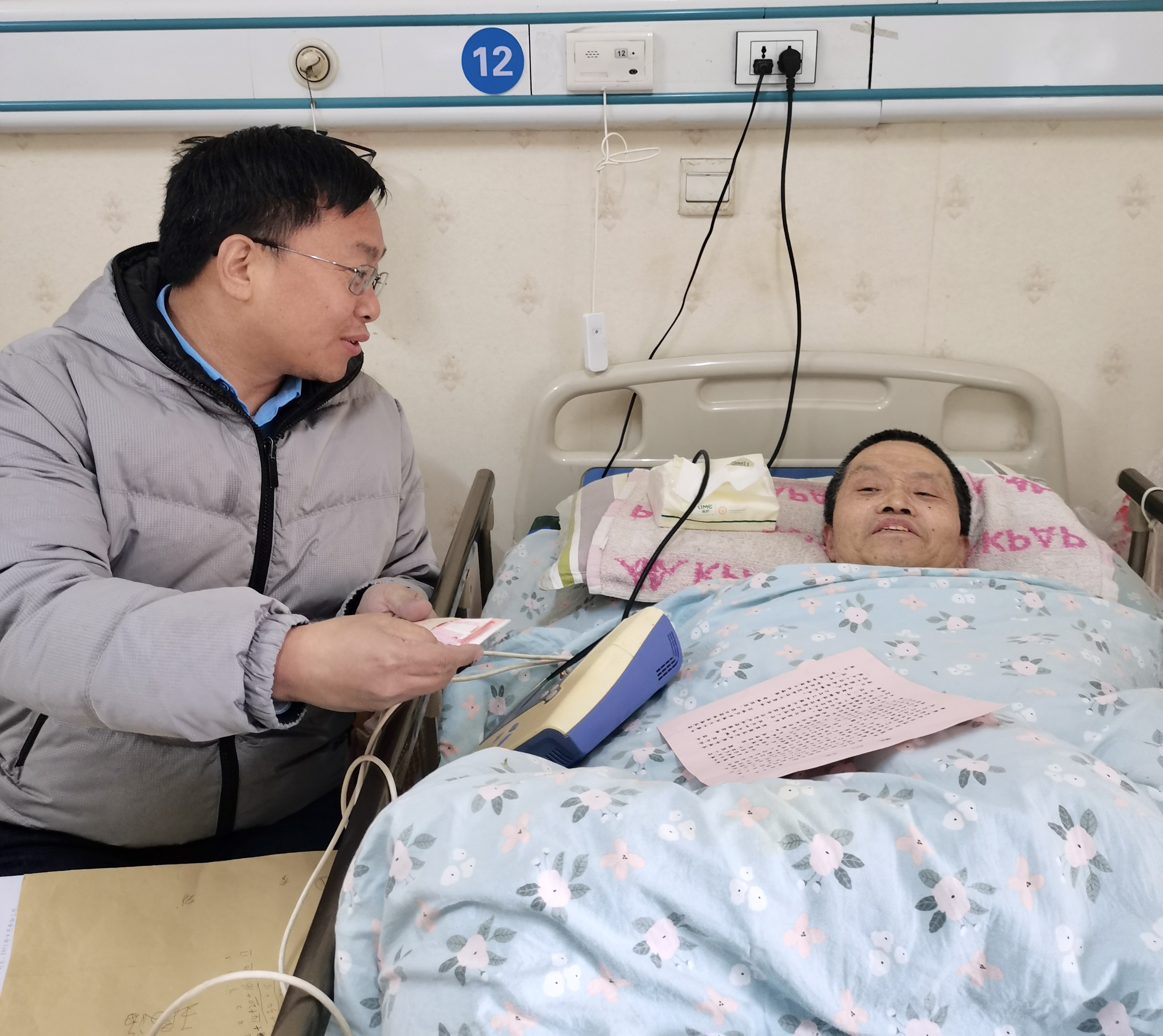 侯中太在成都向迪琦家中,与向老师夫妇以及家人进行交谈,了解向老师当年在民师校教学《彝语文》的经历、在昭觉参与创建民师校之初的艰难,并对他曾经为学校的发展所作出的贡献表示感谢。在成都温江寿安镇温江仁爱医院看望退休教师王殿海时,侯中太向当值医生询问了王老师的病情,感谢护工刘阿姨对王老师三年多时间的照顾,与王老师远在上海工作的孩子通了电话,并与王老师回忆了在凉山民师校的峥嵘岁月,希望王老师早日康复,早日到西昌民族幼专看看学校的发展变化。