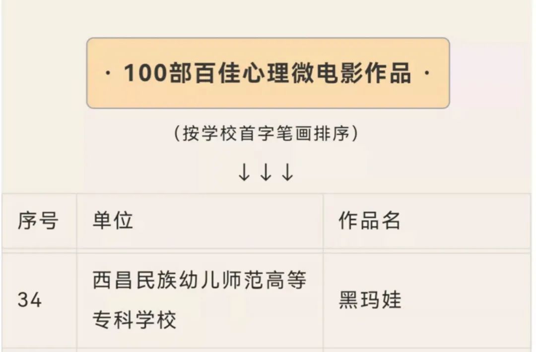 3月3日,由中国心理学会心理危机干预工作委员会主办的首届全国高校心理微电影优秀作品展结果公布,我校选送的微电影《黑玛娃》,从众多作品中脱颖而出,被评为全国百佳心理微电影作品。据悉,百佳作品后期将在央视频客户端展播。