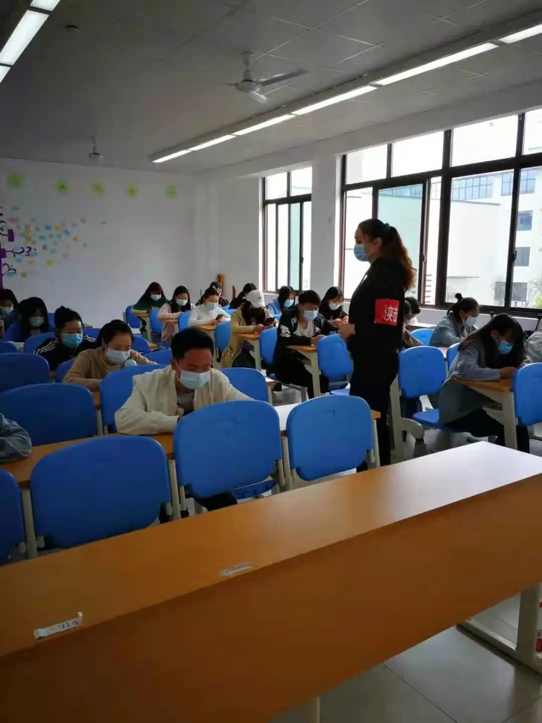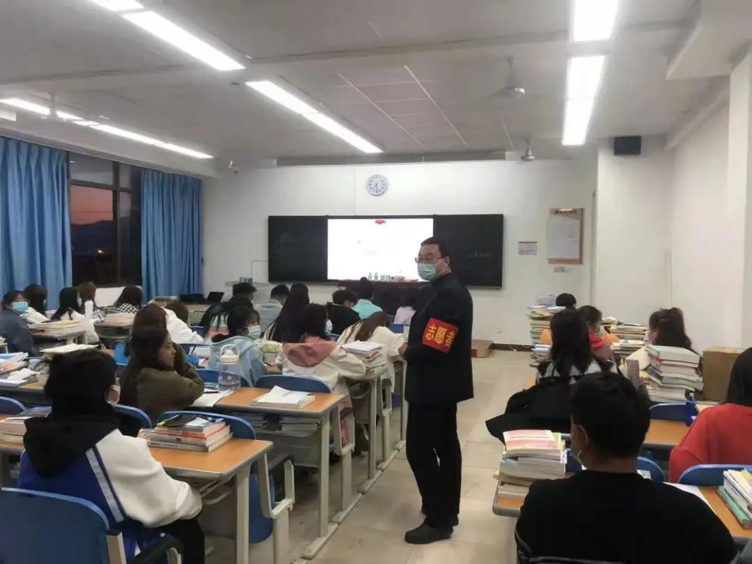 ▲艺术教育支部党员志愿服务队利用开学第一课到班级宣传疫情防控要求▲