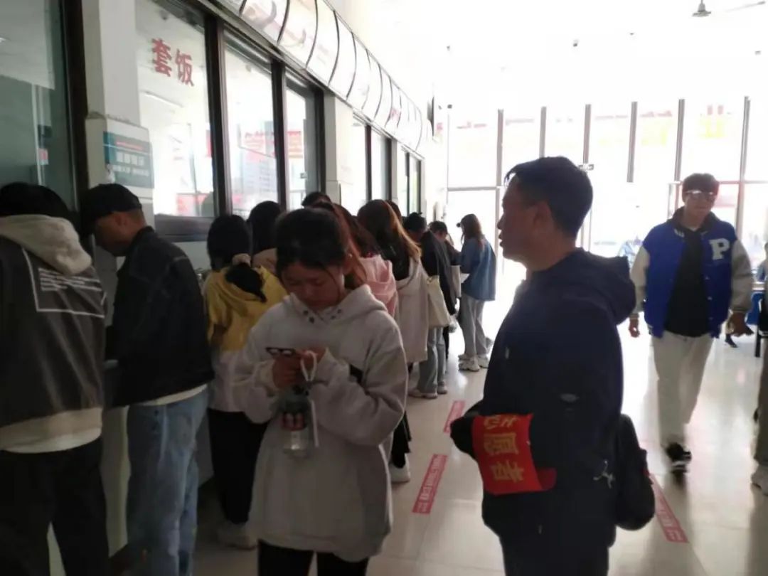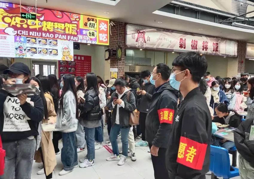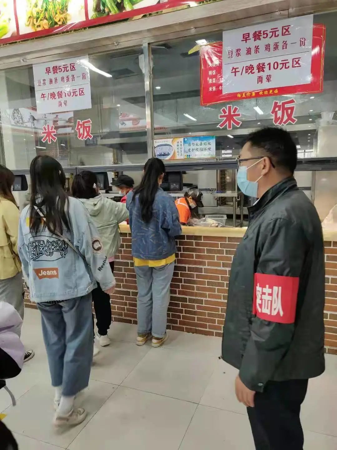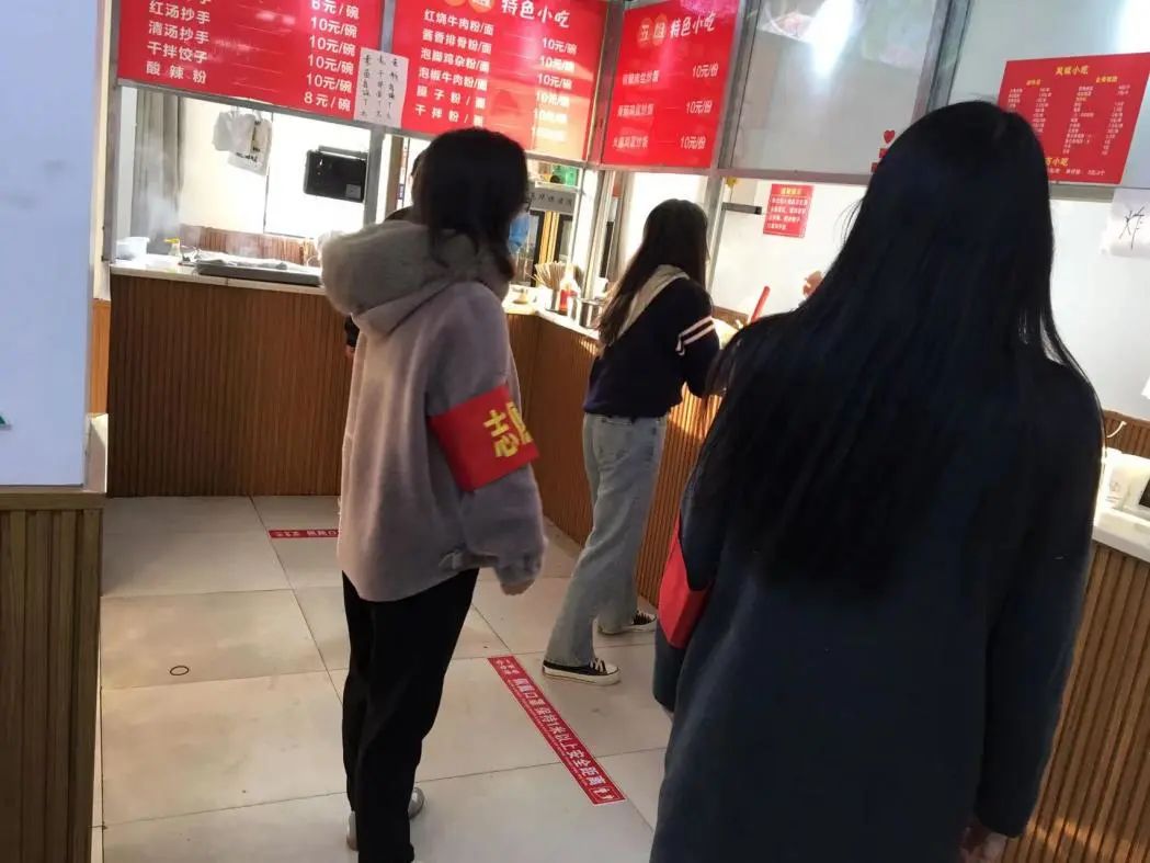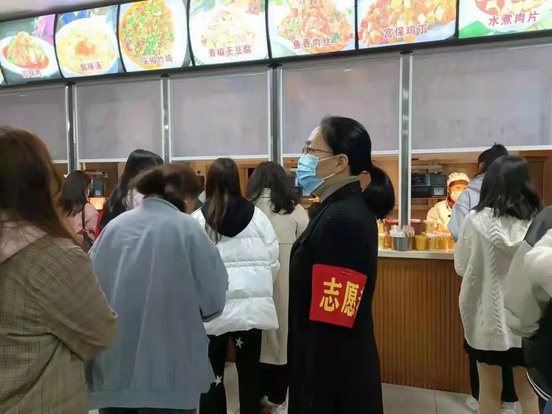 ▲小学教育系支部党员志愿者到食堂维护就餐秩序▲