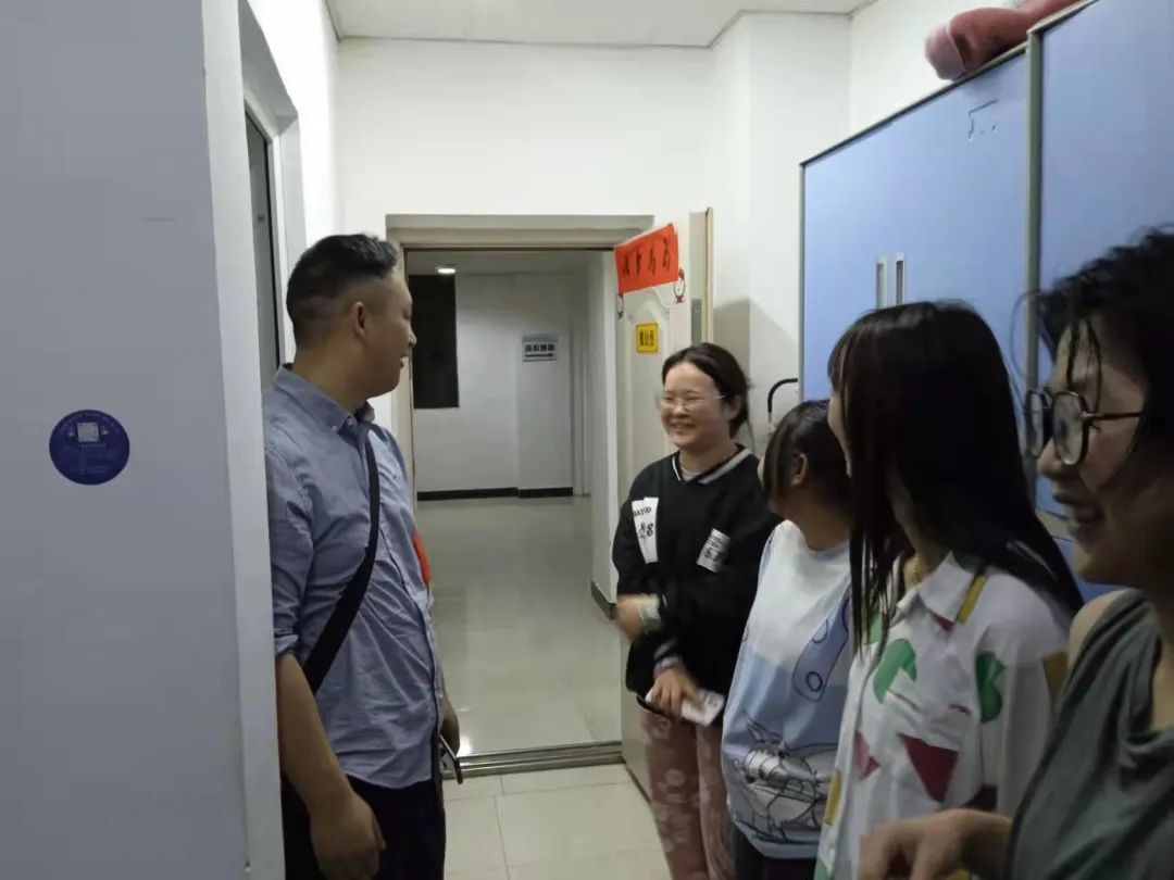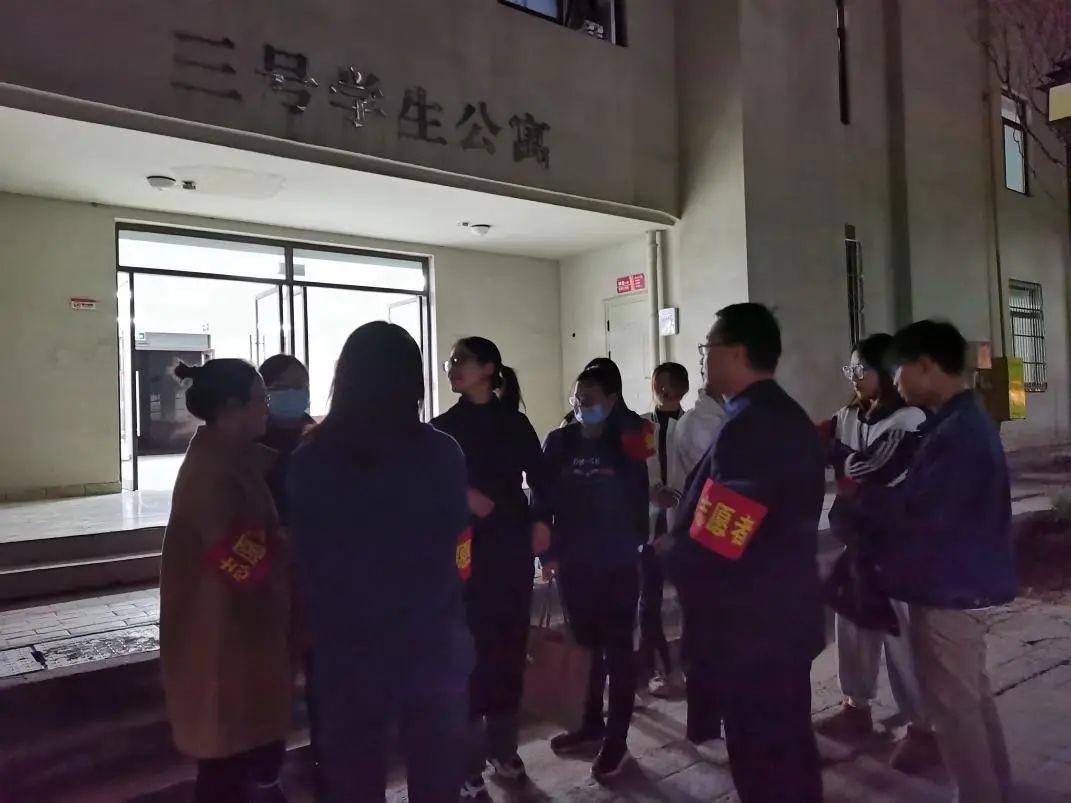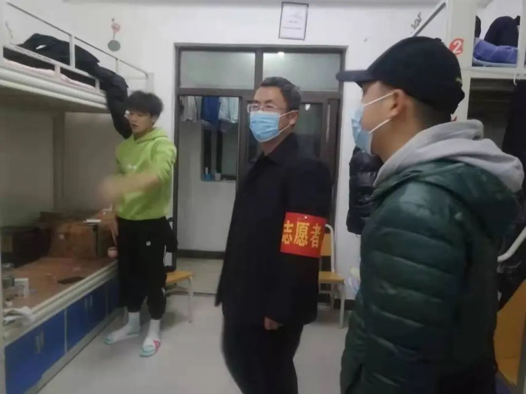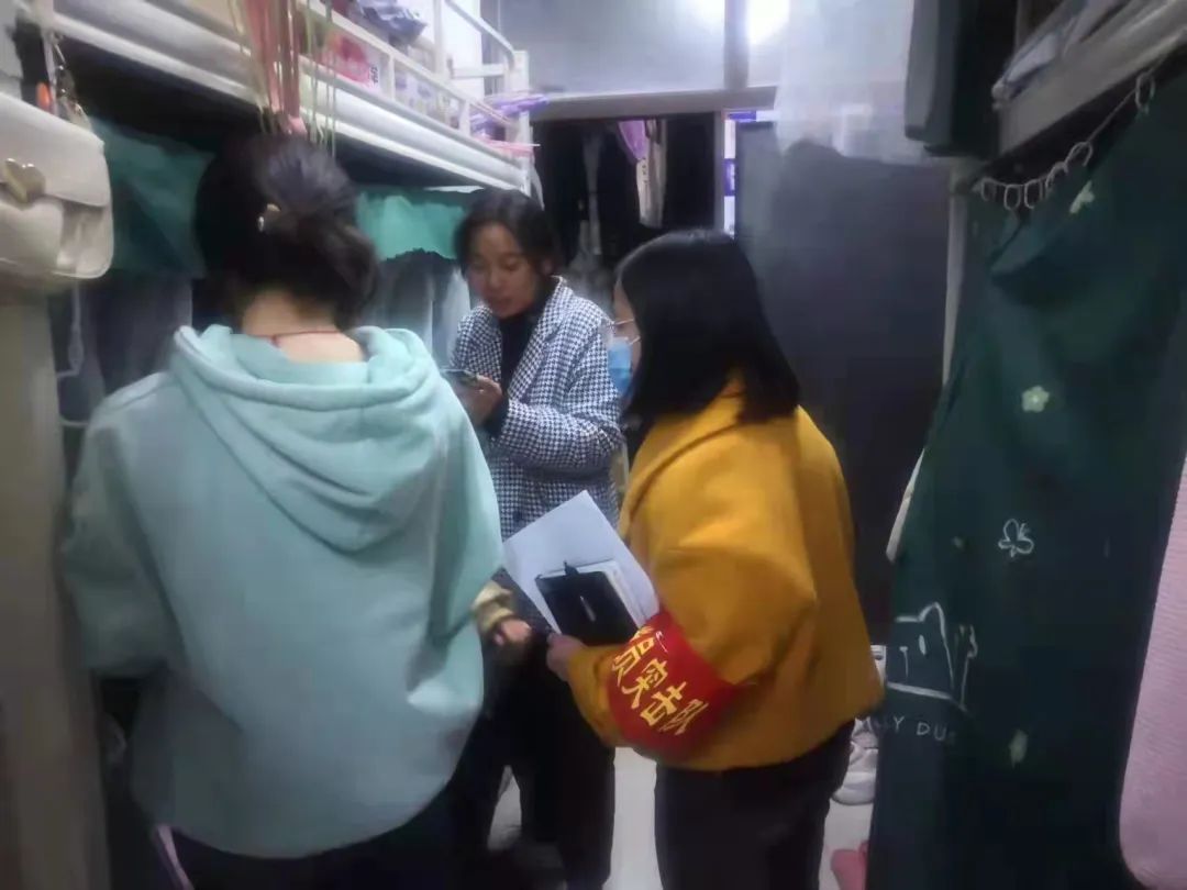 ▲小学教育系党员志愿服务队到寝室检查学生寝室卫生及归寝情况▲