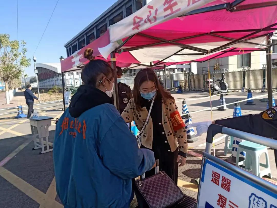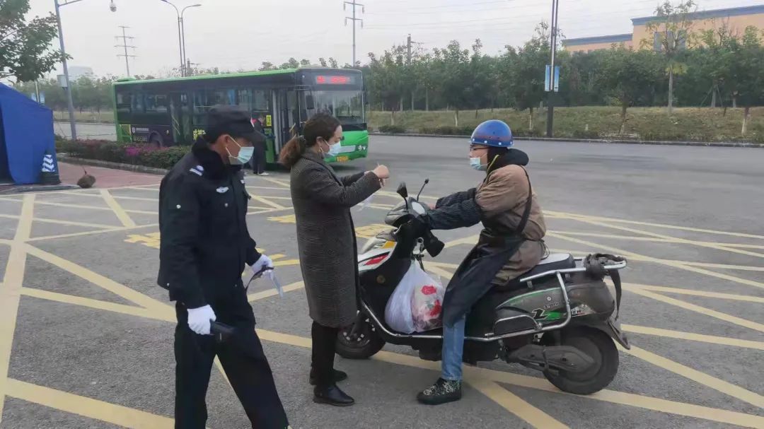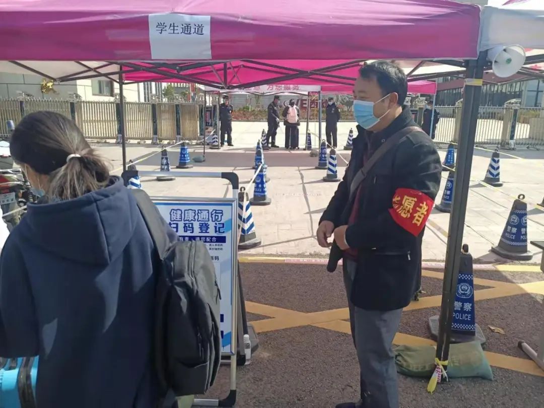 ▲机关一支部党支部党员志愿者协助门岗维持进出校园秩序▲