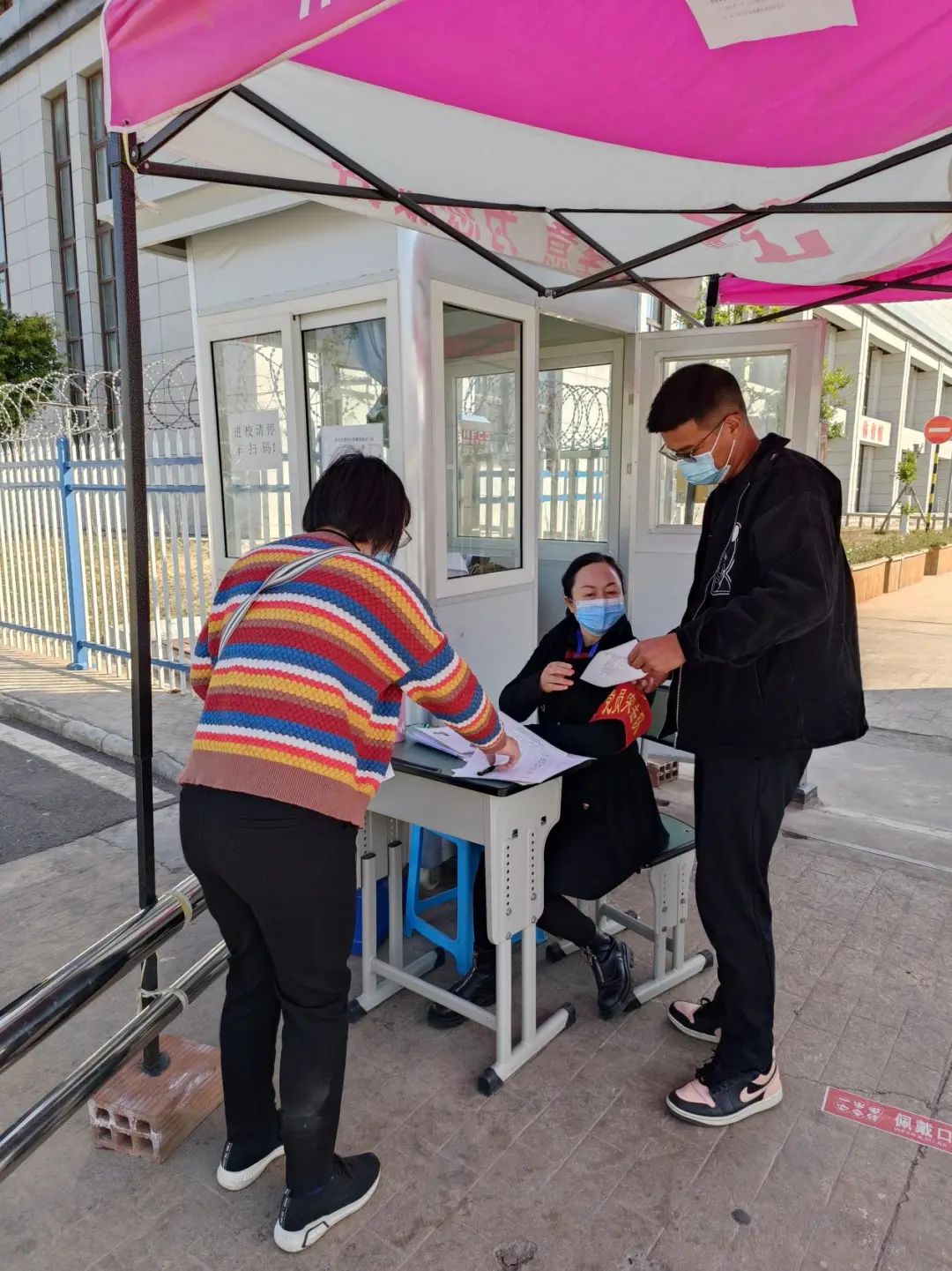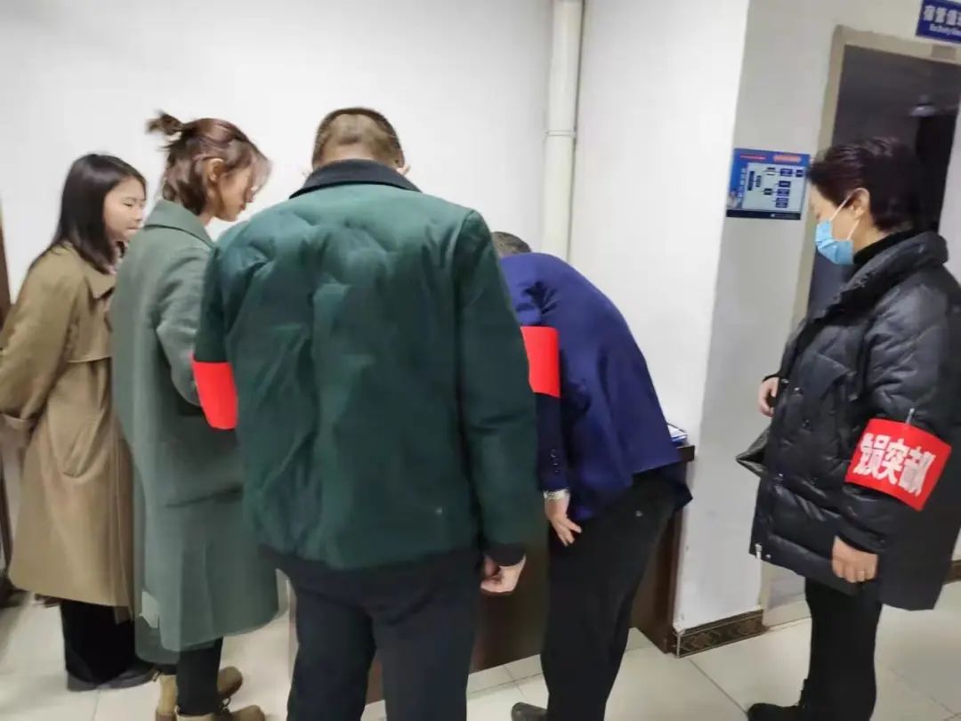 ▲机关二支部党支部党员志愿者协助维持排队秩序▲