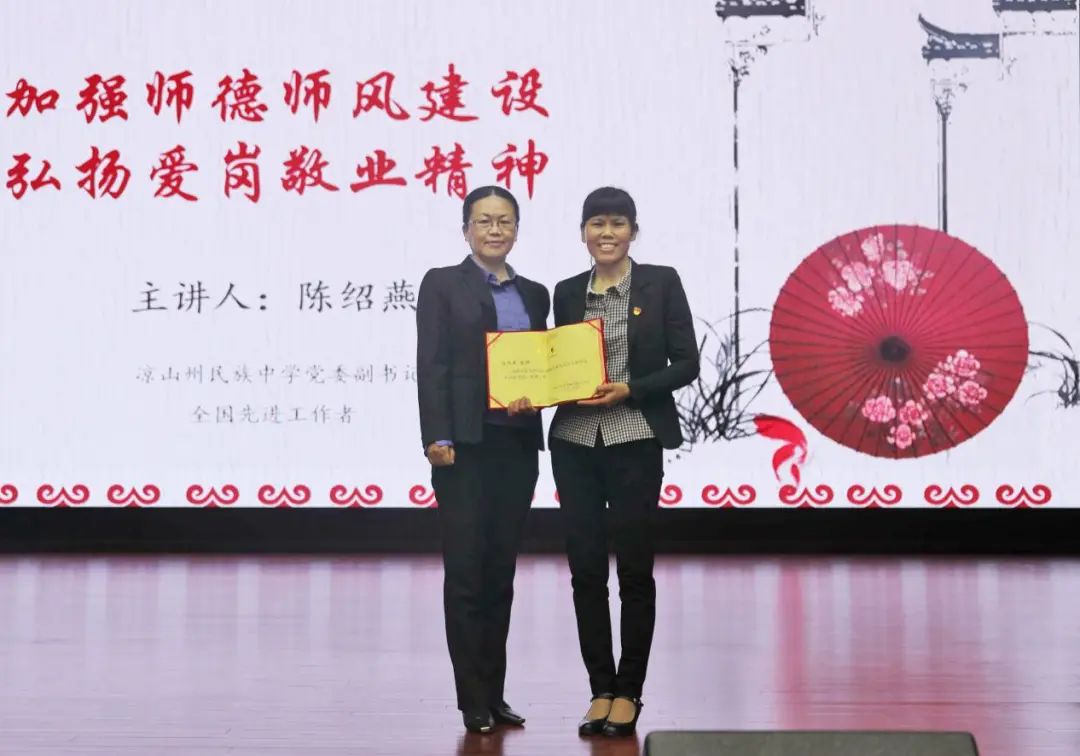 为加强师德师风建设,切实提高教师职业道德水平,4月12日下午,我校特邀凉山州民族中学党委副书记、全国先进工作者陈绍燕在雏鹰剧院开展了以“用真心成就用爱心守护——一名教师的成长之路”为题的讲座。校党委副书记、工会主席王玉萍,党委委员、纪委书记沙德康出席讲座,各部系教师、学生代表共300人参加了讲座,讲座由思政课程教学部主任柯黎主持。