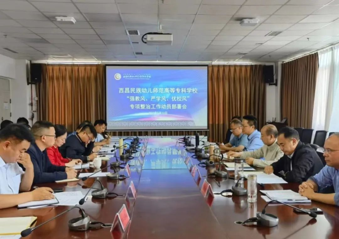 5月10日,西昌民族幼专“强教风、严学风、优校风”专项整治工作动员部署会在行政楼1508会议室召开。相关校领导、党委委员、处室、系部负责人参加,党委副书记、校长赵波主持会议。
