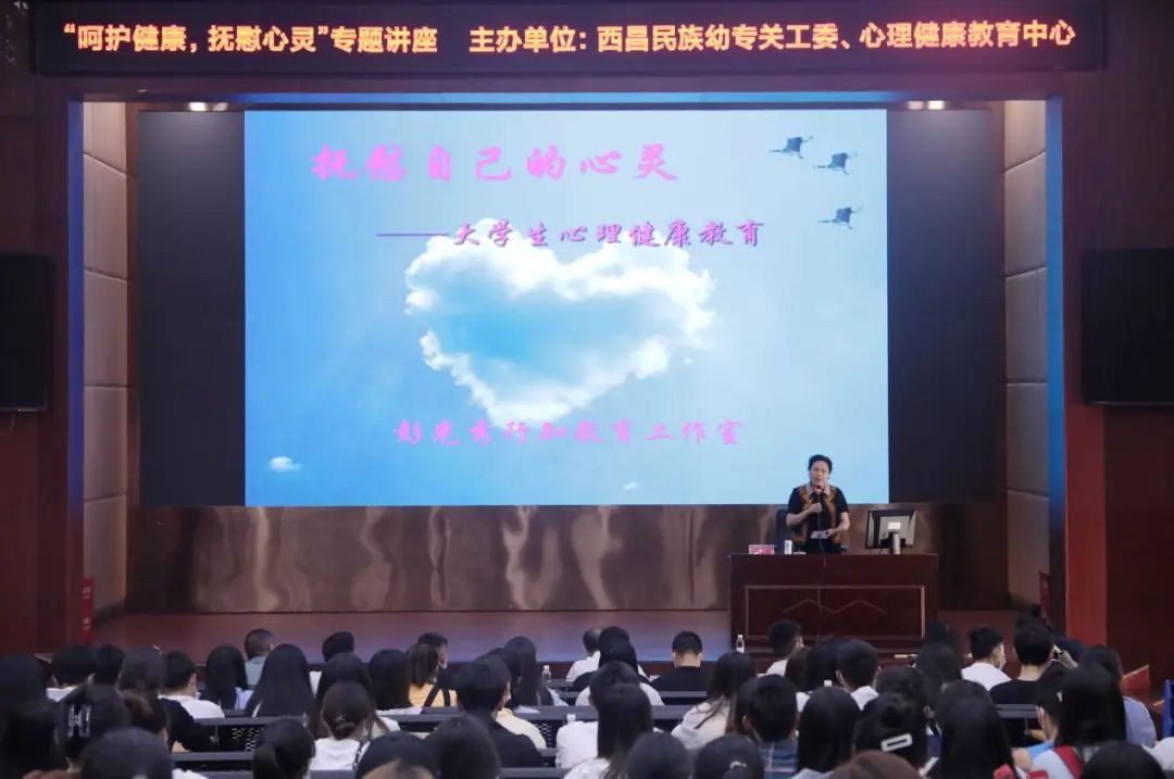 为充分发挥学校“五老”志愿者作用,切实关心关爱学生健康成长,引导学生尊重、热爱生命,关注自己内心,关怀身边同学和朋友,提高学生人际交往能力,构建健康、和谐、良好的校园育人环境。5月10日,西昌民族幼专关工委、心理健康教育中心特邀学四川省特级教师、教育心理学高级讲师、国家二级心理咨询师、中国陶行知研究会生活教育行动讲师团成员、校“五老”志愿者彭光秀举办了以《抚慰自己的心灵》为题的健康教育专题讲座。校党委委员、组织人事处处长、关工委主任潘开成,学生工作处副处长曹琰及相关部门负责人和师生代表200余人参加了讲座。学生支助中心负责人阿的阿加主持讲座会。