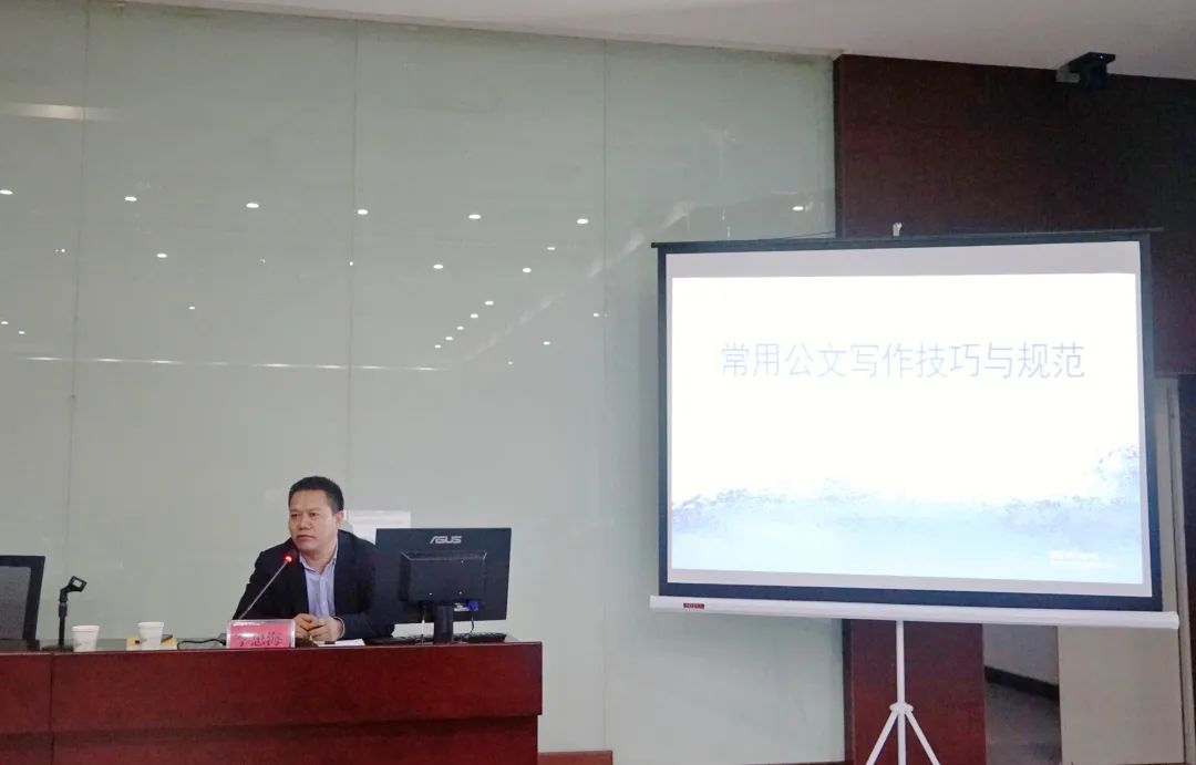 培训会上,李忠海主任以《常用公文写作技巧与规范》为题,结合自己多年公文写作实践,阐述了公文的基本概念、公文写作的技巧和常用公文的基本规范。李忠海主任指出公文写作“看似寻常最奇崛,成如容易却艰辛”,提高公文写作能力要多看、强记、勤思、硬磨、精炼。培训突出一个“实”字,呼应实际需求,注重实例教学,指出了公文写作中知识短板和实操盲区,帮助参训人员提升写作能力。