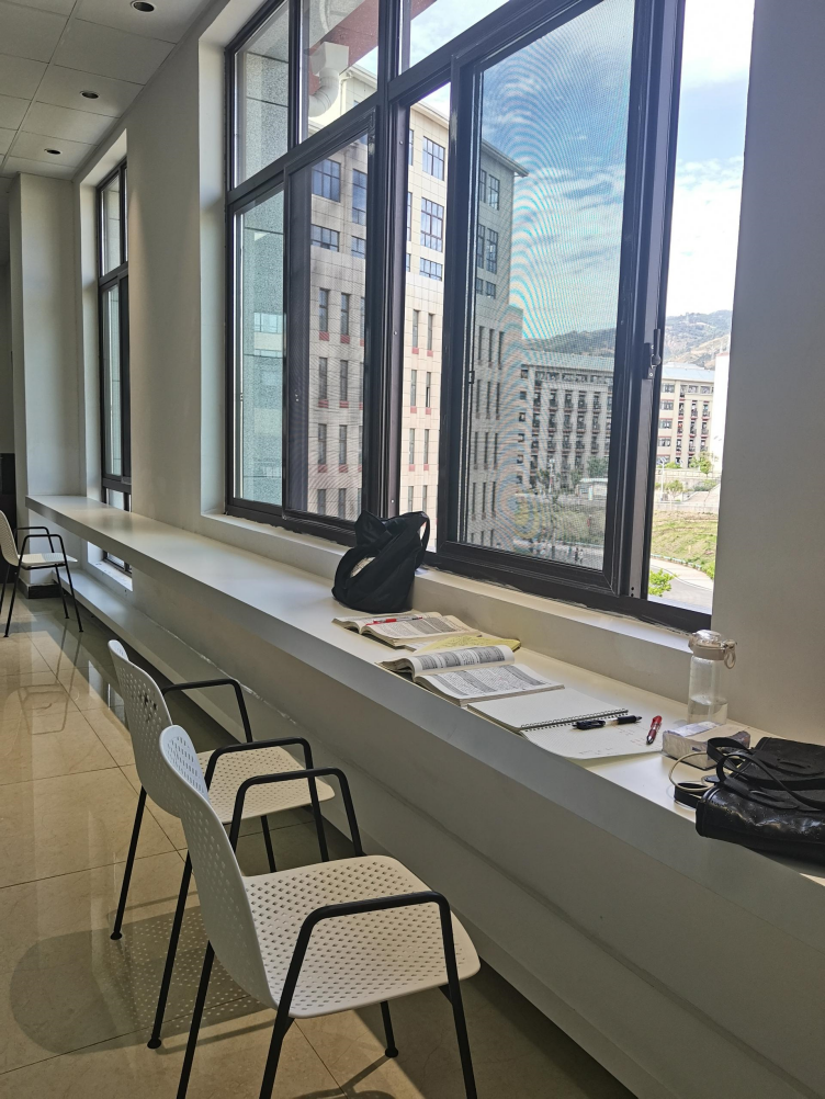 国美艺术书屋空间由中国美术学院马旭东老师设计,配合艺术馆原有中式风格,将空间化最优利用,通过墙体隔断使艺术书屋形成一个独立空间,在窗前新增书写台,读者能够低头看书、抬头看景,整体呈现出独特的艺术风貌,该空间也将成为学校援建史中的一个亮点与见证。
