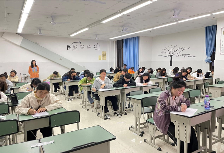 本次竞赛共吸引了338名学生参与,笔试现场紧张而秩序井然,同学们有序参与,沉着答题。