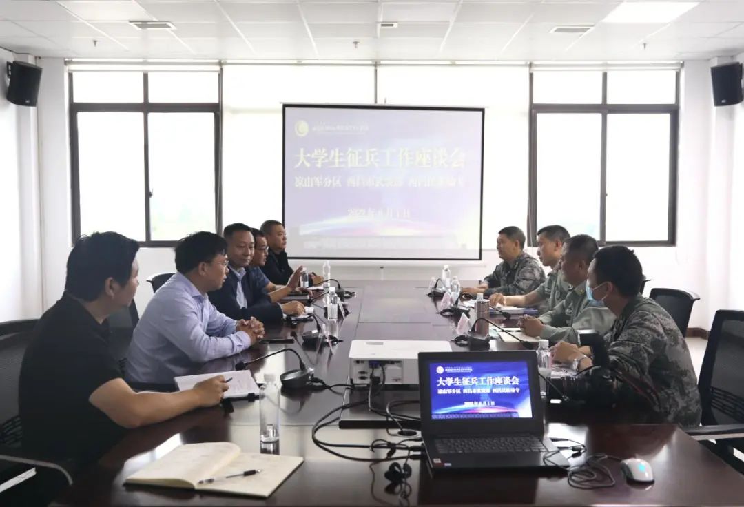 近日,省军区王欢、凉山军分区张华勇参谋、西昌市委常委武装部部长王瑞华、参谋姚芝才一行到我校开展征兵工作调研并召开座谈会。学校副校长侯中太,武装保卫处处长牟勇等相关负责同志参加了座谈会。