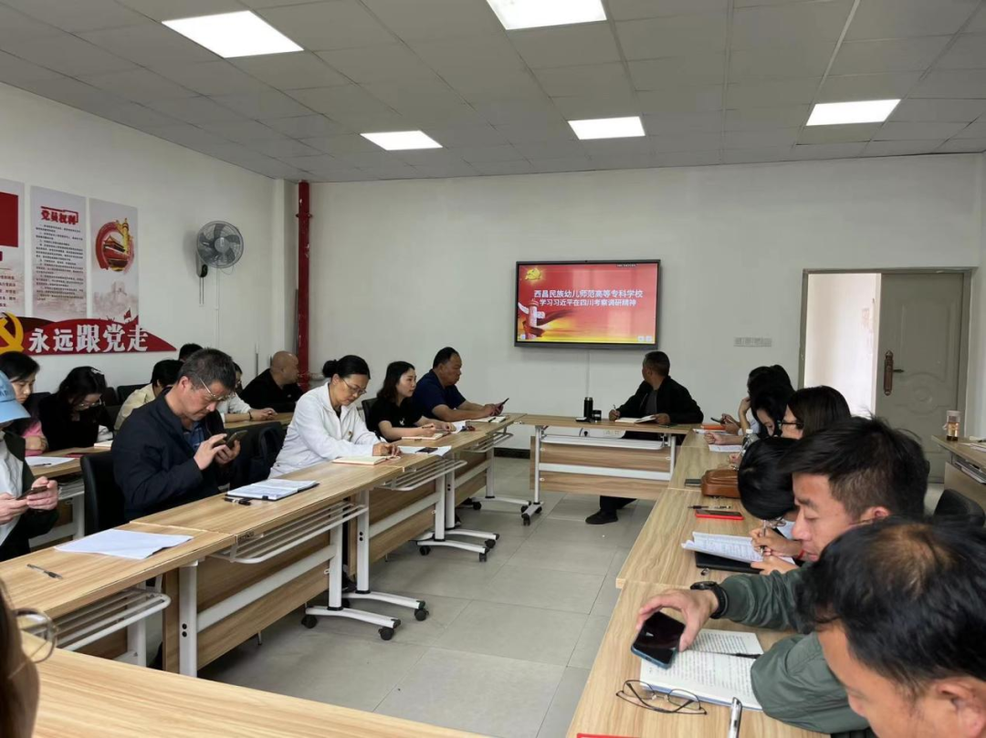 习近平总书记继2018年到四川、到凉山考察后,再一次到四川考察,体现了习近平总书记对四川深情厚爱,我们要认真学习领会指示精神,更加紧密团结在以习近平同志为核心的党中央周围,进一步坚定“四个自信”,增强“四个意识”,做到“两个维护”,全面贯彻党的教育方针,时刻牢记为党育人、为国育才的初心使命,认真落实立德树人根本任务,做深做实毕业生就业工作,开拓进取,担当作为,特别是要抓住省第十二次党代会的决策部署,结合凉山州委州政府关于推进教育高质量发展的实施意见,对标对表,以钉钉子精神推动学校各项事业发展,以优异成绩迎接党的二十大胜利召开。