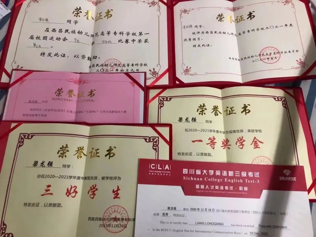 好高的羁鸟最喜飓风的味道,飞扬的少年最知远山的明亮。青春的朝暮总会因为我们的努力尽显辉煌,本期栏目为大家分享西昌民族幼专20级旅游管理1班梁龙强同学的故事。梁龙强同学在英语四级考试中取得534分的好成绩,在创新创业比赛中获得银奖,在四川省导游风采比赛中荣获二等奖……