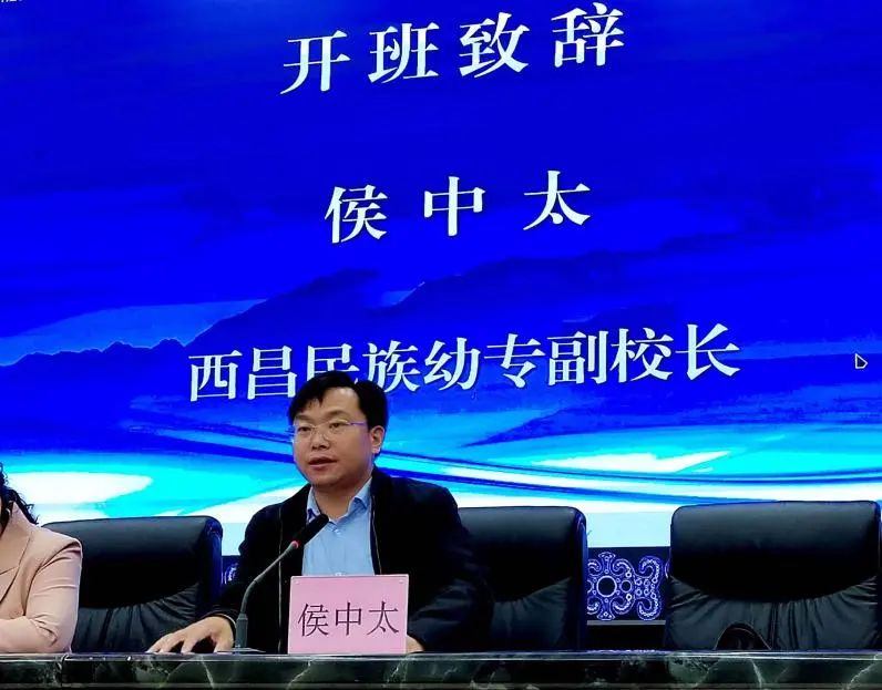 副校长侯中太在致辞中从建校背景、学校概况、专业设置等方面介绍了西昌民族幼专的办学使命和人才培养定位。传达了全州教育大会精神和《凉山州学前教育高质量发展实施方案》。鼓励在座的幼儿园教师心怀乡村教育情怀、努力提高教育教学技能、做好乡村幼儿的“学前推广普通话工作”,当好孩子人生路上的启蒙者和领路人。他要求各位幼儿园教师珍惜难得的学习机会,遵守培训纪律,沉下心来加油充电、学有所获。