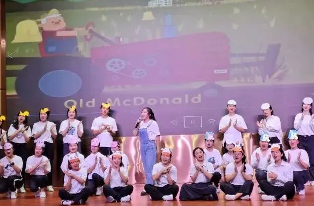活动现场,小学教育系学生们在欢快的旋律中,动情演唱彝、汉、英儿歌,动人的旋律将师生们带回美好童年,台上台下共同欢唱。