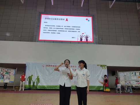 ▲学生带领禁毒防艾宣传志愿者宣誓▲