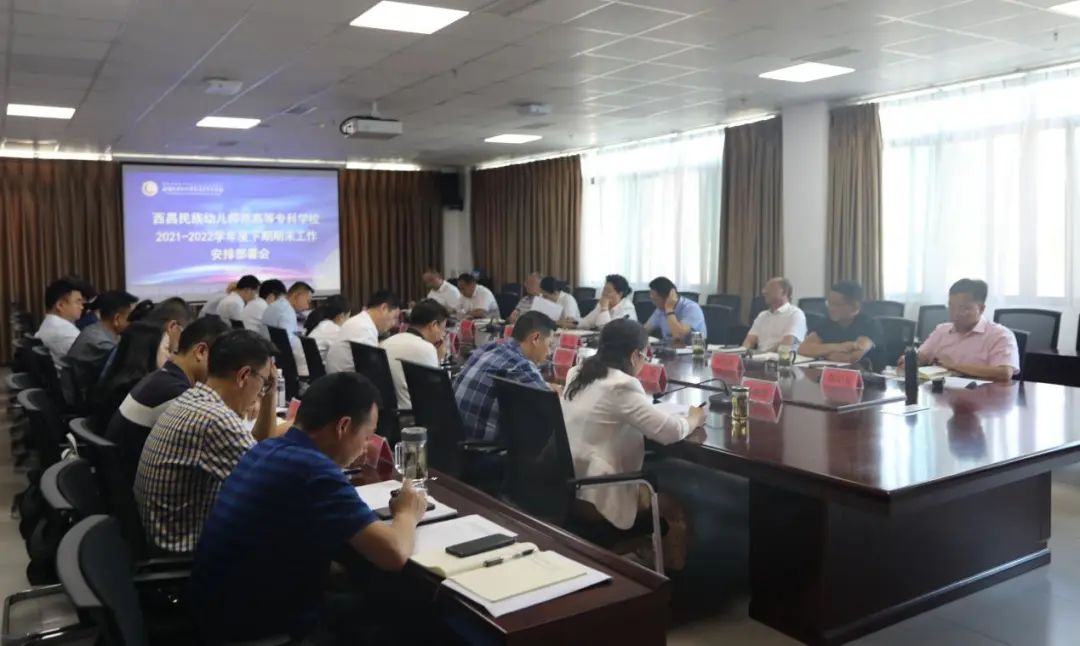为圆满完成本学期期末各项重点工作,7月6日下午,学校在行政楼1508会议室召开了西昌民族幼专2021-2022学年度下期期末工作安排部署会,学校领导及各系部、处室负责人(联络员)参加会议。会议由党委副书记、校长赵波主持。