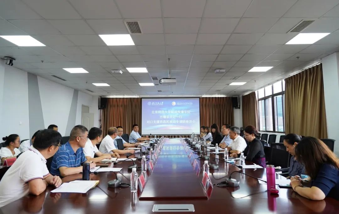 在行政楼1508会议室,两校召开了座谈会,就双方共建融媒体中心相关需求、对口支援我校教师干部新闻宣传和网络素养培训工作、对口支援公益援建信息科学与人工智能教育、网络新闻与传播相关学科建设进行了交流发言。