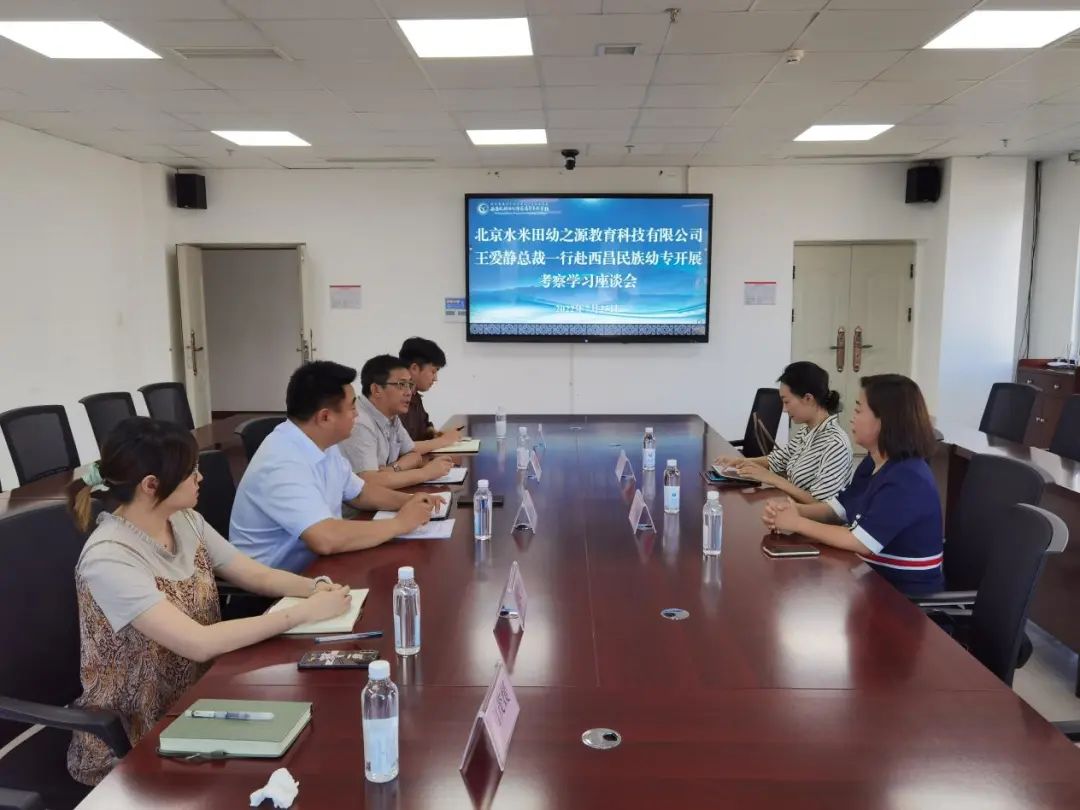 为进一步深化校企合作,实现校企产学研深度融合,服务凉山州地方经济发展,补齐教育短板。7月25日,北京水米田幼之源教育科技有限公司总裁王爱静一行赴我校学前教育系开展考察调研,并就双方开展校企合作事宜进行洽谈。