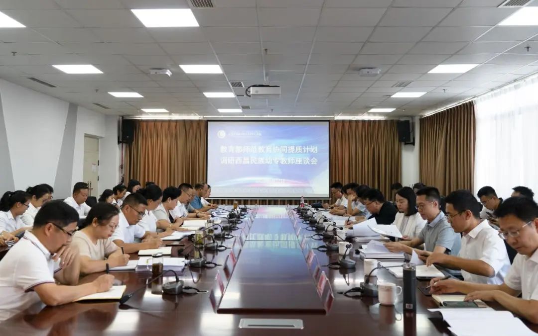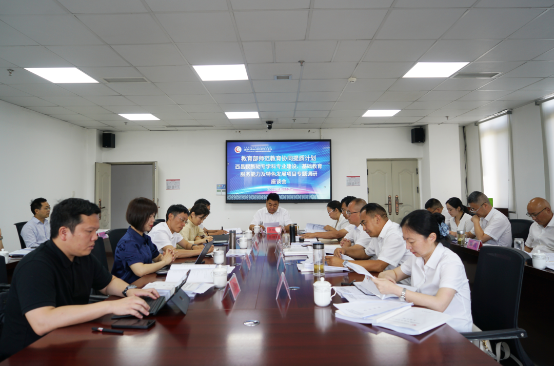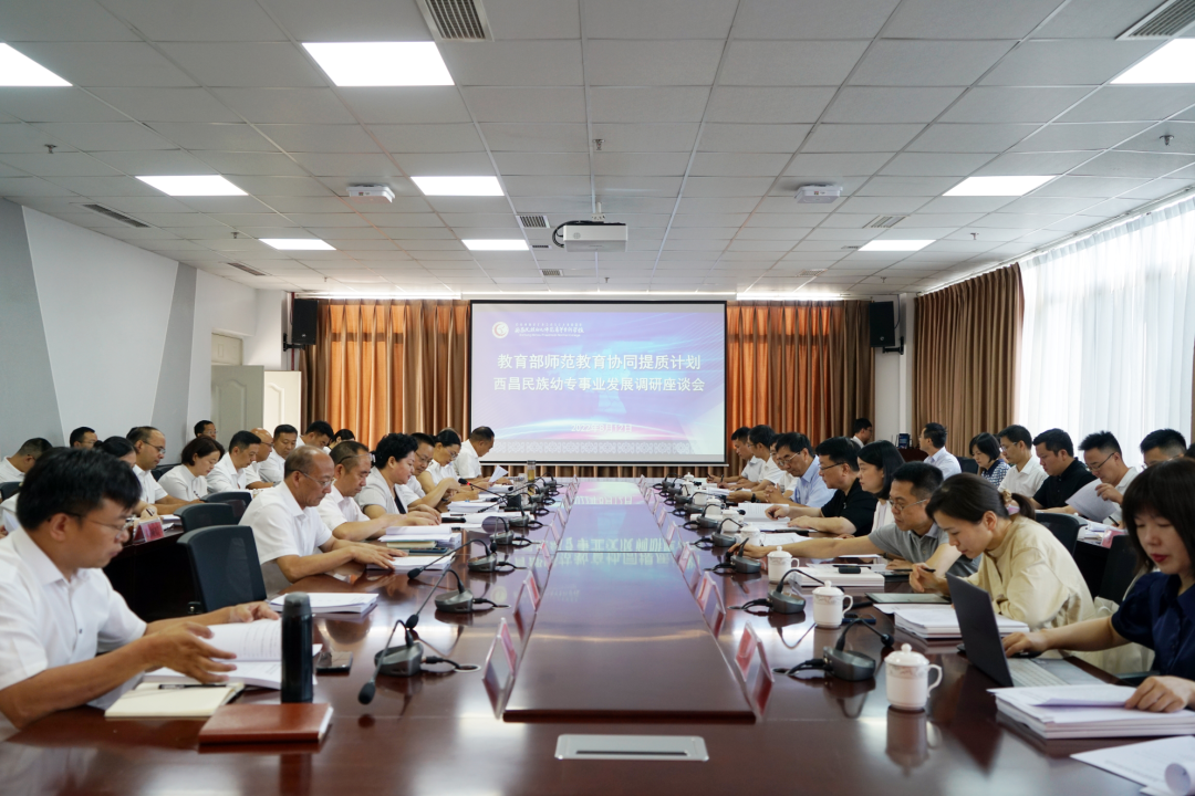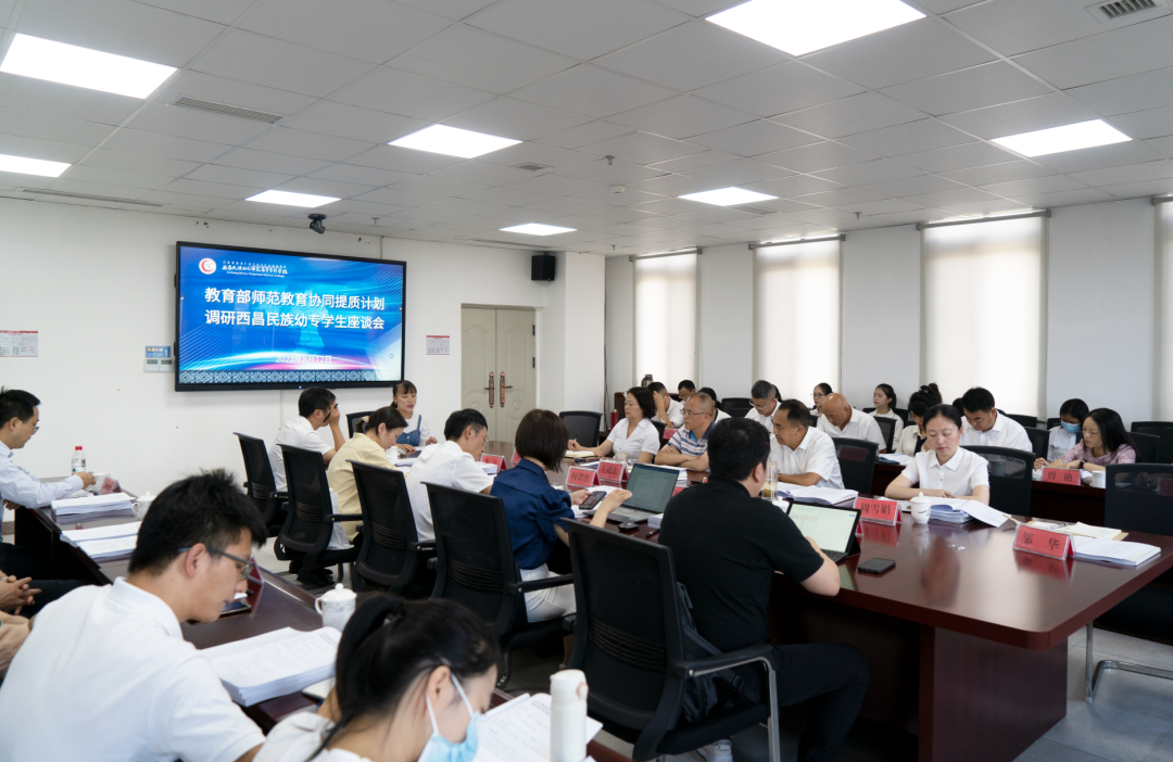 8月12日,教育部师范教育协同提质计划西昌民族幼专事业发展系列调研座谈会在我校召开。北京师范大学党委书记程建平,党委办公室主任、“强师工程”办公室主任张朱博;四川师范大学党委书记李向成,党委常委、副校长何诣然;四川省教育厅教师工作处处长罗瑜,凉山州委教育工委副书记马泽郎;北京师范大学、省教育厅、四川师范大学相关处室负责人和专家及西昌民族幼专全体班子成员和各处室负责人参加会议。