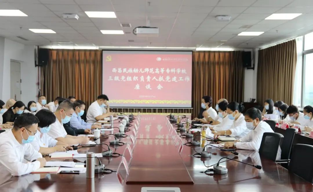 为持续发挥好学校各级党组织和党员在疫情防控、教育教学、迎评促建等重点工作中的先锋模范作用,积极推进学校党建工作品牌和“支部工作法”创建工作。9月17日,西昌民族幼专组织召开三级党组织负责人抓党建工作座谈会。相关校领导、党总支、各党支部书记、各党小组组长、退休老党员代表共40余人参会,校党委书记石芳作重要讲话。会议由校党委副书记、工会主席王玉萍主持。