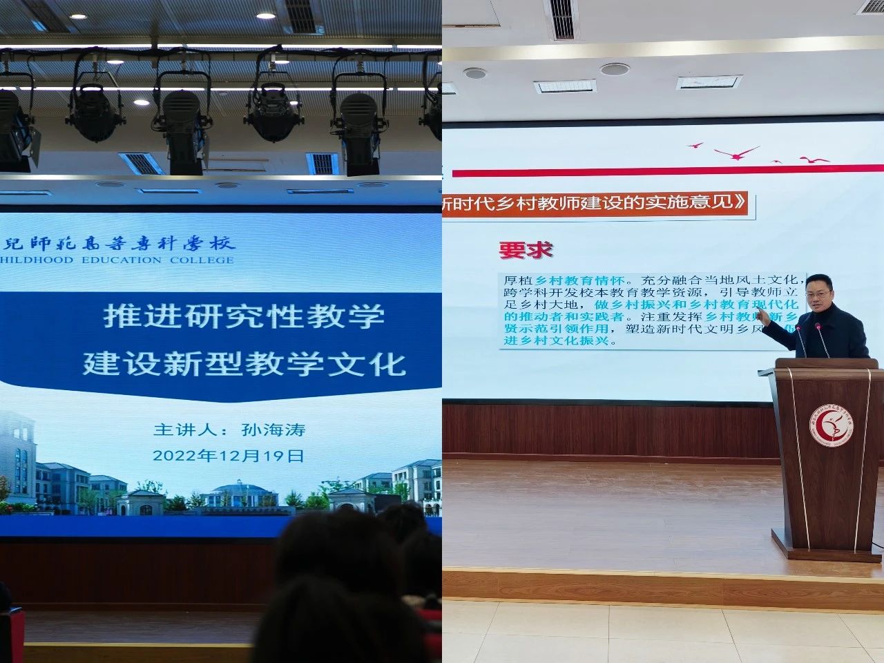 作为智慧教育元空间首场“送研送陪”活动,宁波幼专孙海涛教授应邀作了题为《推进研究性教学 建设新型教学文化》的专题讲座。孙教授从高校教师开展教学研究的重要性、基于教师研究的新型教学文化思考、教师开展教学研究的路径与方法等三方面,远程为西昌民族幼专教师送上了精准指导。随后,在西昌民族幼专副校长成国志主持下,西昌民族幼专党委副书记、校长赵波教授利用元空间为在场和线上的西昌民族幼专干部教师作了题为《新时代民族乡村基础教育未来优师培养体系探索》的专题报告。赵波校长从师范类专业人才培养的逻辑起点、新时代民族乡村基础教育未来优师培养体系的内涵、新时代民族乡村基础教育未来优师激励支持计划以及落实体系所需要的重点工作支撑等四方面,向大家系统阐述了他对新时代民族乡村基础教育未来优师培养体系的新思考、新见解和新主张。