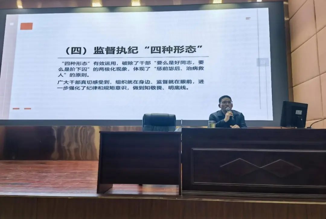 沙德康从新时代十年反腐败斗争取得压倒性胜利并全面巩固、反腐败斗争取得的成就、作风建设取得的成效和经验、反腐败斗争积累的重要经验、以自我革命精神推进全面从严治党五个方面进行了详细讲述,用大量典型案例和数据来阐述新时代十年反腐败斗争取得的历史性成就和书写百年大党“自我革命”崭新篇章的伟大历程。