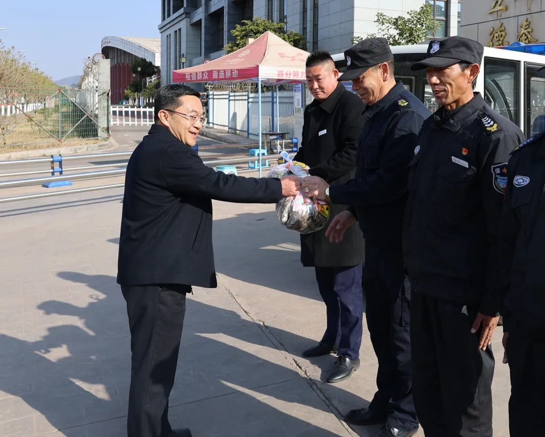 卢立武书记一行带着精心准备的慰问品,与员工进行了亲切的交流,代表学校对大家在寒假期间坚守岗位表示感谢,勉励大家齐心协力保障学校安全、有序、稳定、正常运转。