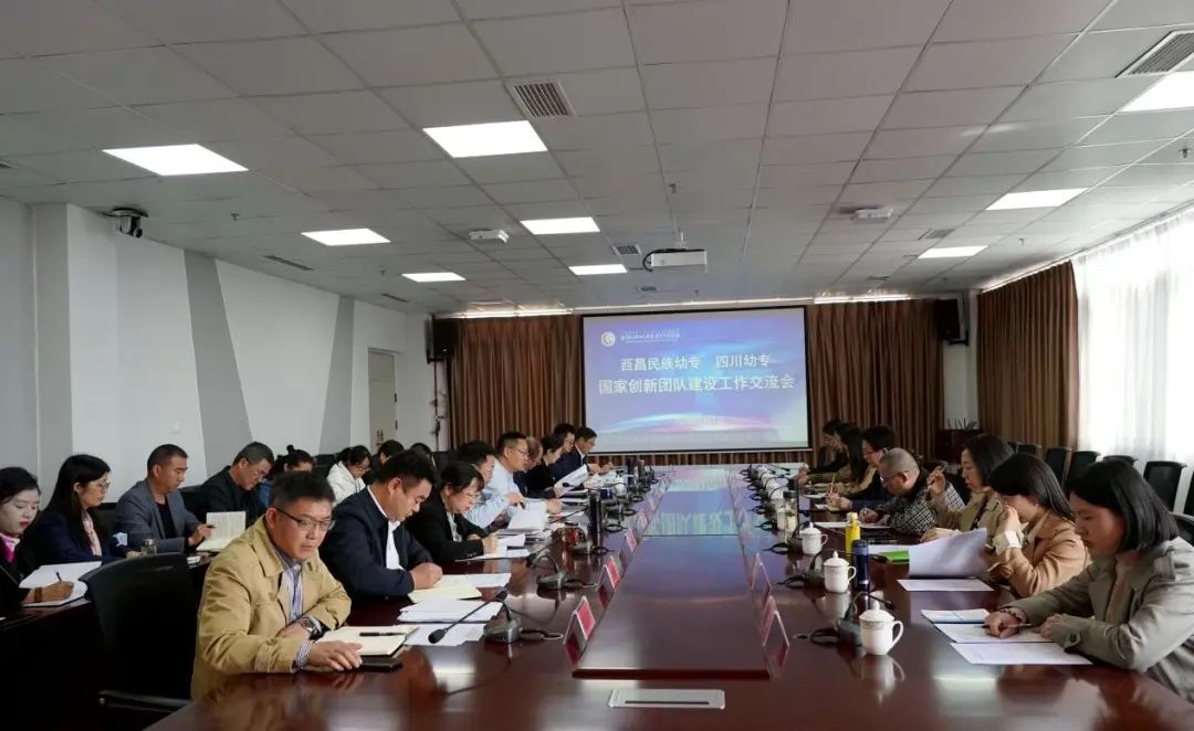 下午,在学校行政楼1508会议室举行了西昌民族幼专和四川幼专国家创新团队建设工作交流会。杨达和侯中太介绍了双方学校国创团队工作开展情况,双方人员就学前教育、早期教育人才培养方案、精品课程建设、双师型教师建设、岗课赛证融合培养等议题进行了深入的交流。