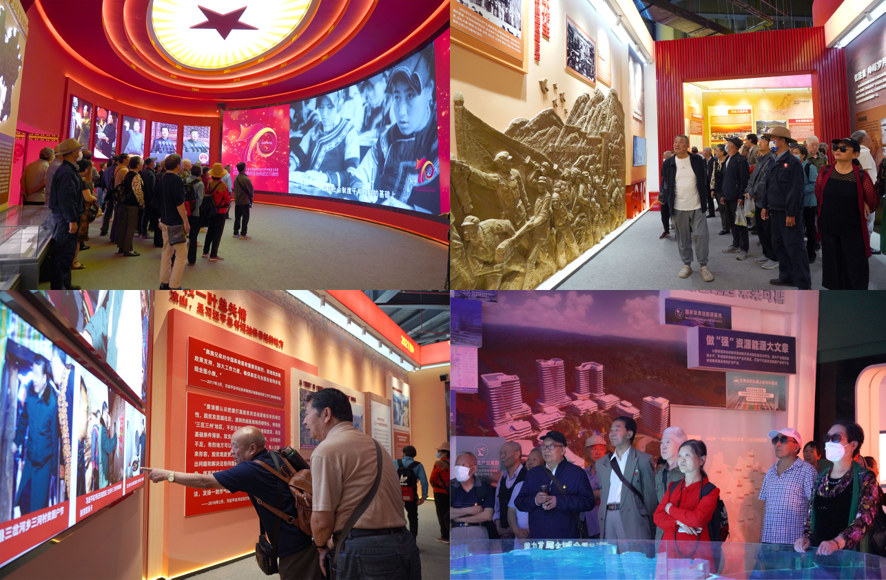 在州70周年成就馆,退休教职工们参观了凉山州成立70周年成就展。展览馆里,一张张历史照片、一份份历史文献、一件件发展成果,全方位展示了凉山州七十载的风雨历程。