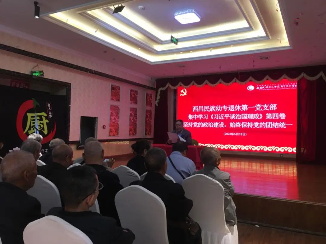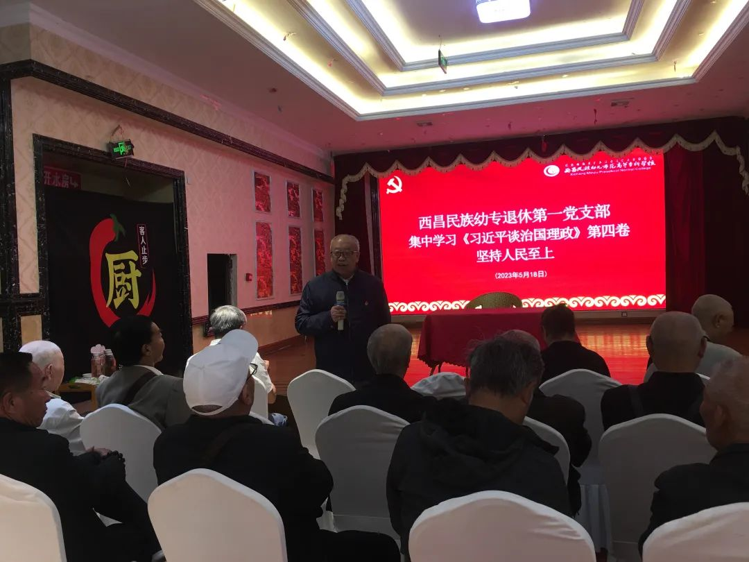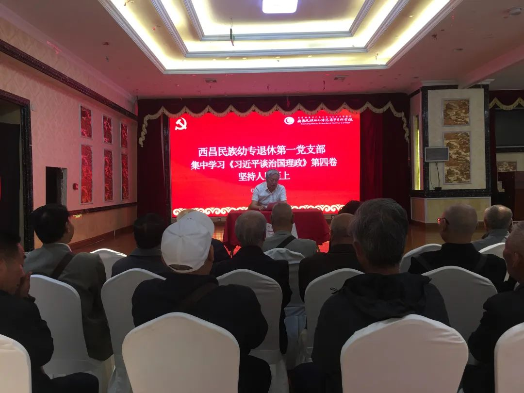 为深入开展理论学习进支部活动,5月18日,西昌民族幼专退休第一党支部开展主题党日活动,专题学习贯彻习近平新时代中国特色社会主义思想,会议由退休第一支部书记王显昌同志主持,在昌20名党员参加学习。