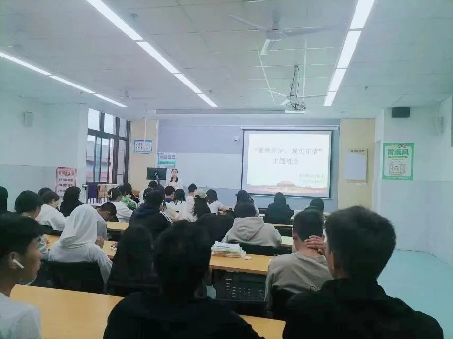 主题班会上,辅导员通过理想信念、道德品质、传统美德、法制纪律等教育培养学生崇尚廉洁、诚信守法的意识,增强自觉抵制不良风气的意识,提高遵纪守法的自觉性和辨别是非的能力,在班级及校园营造敬廉崇洁的良好氛围。