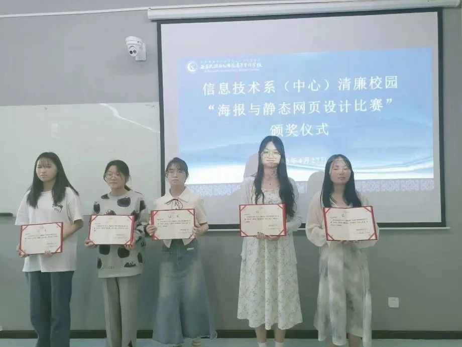 信息技术系(中心)结合系部特点与专业特色举办了“海报与静态网页设计比赛”,同学们以“敬廉崇洁·诚信守法”为主题自行设计海报与静态网页作品并投稿。最终,系部收到了14位同学的投稿作品,并按要求评选出优秀作品给予表彰,以此激发学生参与活动的积极性。