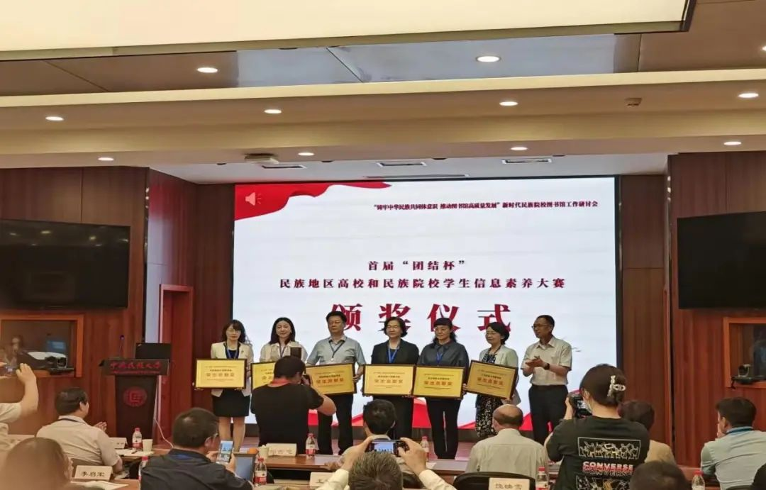 近日,首届“团结杯”民族地区高校和民族院校学生信息素养大赛颁奖仪式在北京举行,我校在本次大赛中取得大丰收,共有19名同学分别获得二等奖、三等奖和优秀奖,3名教师获得优秀指导教师奖,学校图书馆获得优秀组织奖。