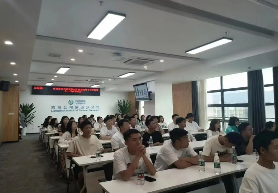 为宣传展示职业教育精神,提高学生专业岗位认知,开拓视野,了解企业优秀文化及岗位需求。近日,信息技术系(中心)联合凉山·西昌人力资源服务产业园和中国移动通信集团四川有限公司凉山分公司开展了“学生企业面对面”参观交流活动。系(中心)主任邹玉泉、副主任李怀阳、学工干事杨正文、辅导员陶彦孜、专业课老师陈芳霞、李明键及45名22级计算机应用技术专业学生参加了此次活动。