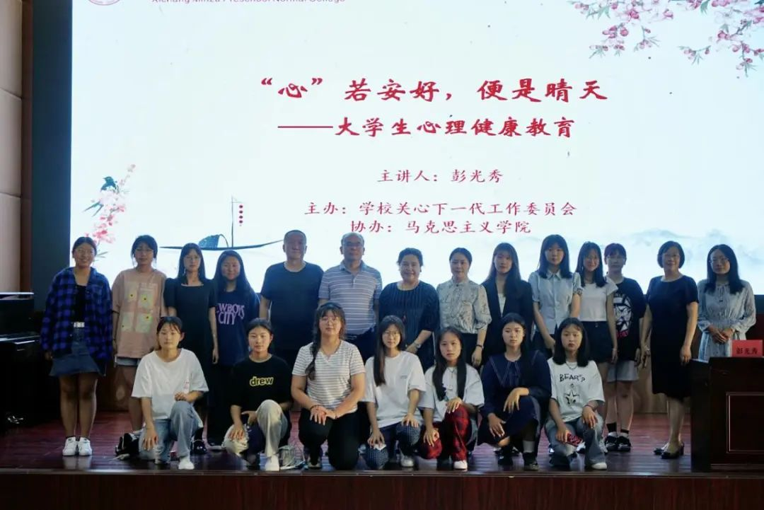 为进一步深化和巩固学校思想政治建设成果,增强师生对心理健康问题的重视,促进大学生心理素质与思想道德素质、科学文化素质和身体素质的全面发展。5月23日,我校学前教育系退休教师彭光秀在学术报告A厅开展了以“‘心’若安好,便是晴天”为主题的心理健康教育专题讲座,校党委副书记、工会主席王玉萍,党委委员、组织人事处处长、校关工委主任潘开成,组织人事处李万林、刘静老师出席讲座,各(院)系部学生代表250余人参加讲座,马克思主义学院院长柯黎主持讲座。