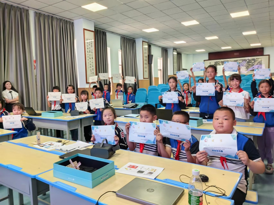 活动中,为了让小学生体验科技的神奇之处,老师还给小朋友们准备了VR眼镜,让他们体验了不同的视听体验。老师为顺利完成实践目标的同学们颁发了证书,勉励他们今后积极学习科学知识,为国家技术产业的发展贡献力量。