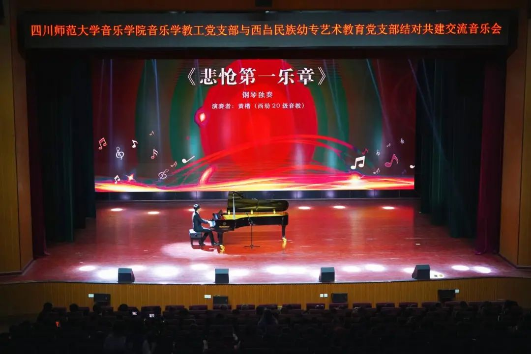 5月25日晚,两校共同举办的交流音乐会在雏鹰剧院拉开序幕,作为支部结对共建活动的拓展,这次音乐会上两校学子充分展示所学专业,为在场的观众带来一场音乐视听盛宴。音乐会通过独唱、对唱、合唱、钢琴独奏、月琴合奏、舞蹈等多种形式展开,促进两校之间的交流与合作,进一步提升以美育人、以美化人、以美培元的氛围,充分发挥党建引领作用,为培养未来的“四有”好老师贡献力量。