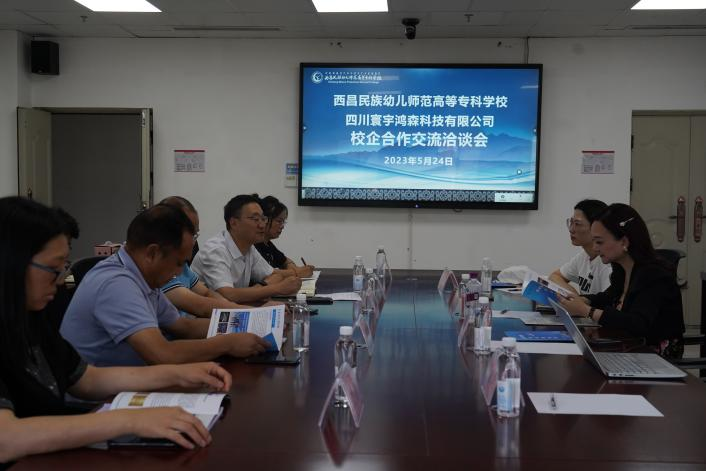 在学校1328会议室,解岚董事长一行与学校党委委员、副校长王晓东,党委委员、副校长马辉,职业教育系农村电子商务专业、大数据与会计专业专任教师就校企合作进行深入交流。李刚介绍了学校和系部情况,并希望和四川寰宇鸿森科技深度合作,完善职教系电商实训基地建设、邀请公司骨干人员进校授课、实现校企专业共建、共同完善人才培养方案。解岚董事长表示,会竭力支持校企合作,共谋发展,协同育人。希望能通过合作培育本地电商品牌,助力培养凉山本土人才,为西幼学生提供大量实践机会,助力地方经济建设,助力乡村振兴。同时,还为农村电商专业课程设计提供了建议,指出供应链方面的人才培养重要性。