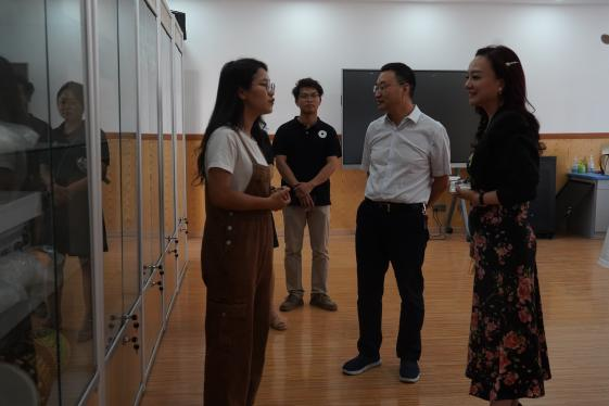 解岚董事长一行在职教系党支部书记李刚的带领下参观了学校美术馆、旅游管理实训室、会计实训室和养老实训室。解岚董事长对学校的基础设施建设、学生的实践能力给予充分的肯定和赞扬。