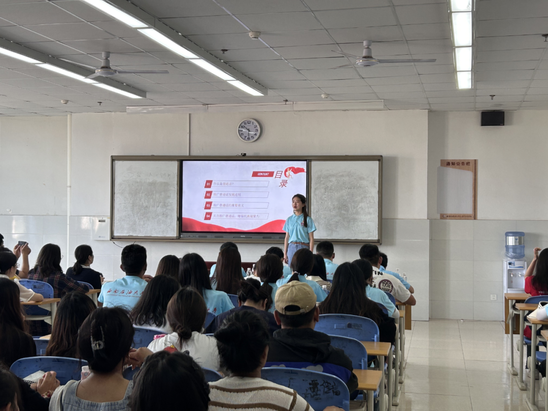 西南石油大学播音与主持专业的普通话培训师为马克思主义学院学生组织了一场普通话推广讲座,讲解了普通话的发音规范、常见错误、正确的口语表达方式以及科学用嗓的技巧,并一对一指导同学进行发音。通过这次讲座,同学们掌握了一些科学发音和护嗓的知识,进一步认识到了学好普通话的重要性。讲座结束后,马克思主义学院学生围绕思想政治教育专业的专业课程、就业方向以及专升本相关政策等问题与西南石油大学研究生进行了互动交流。