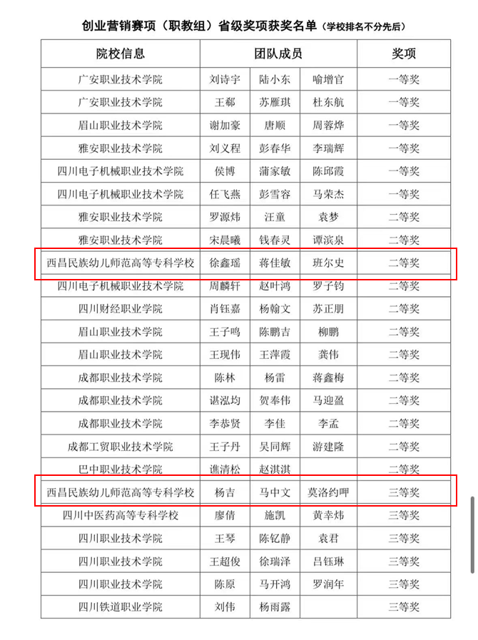 近日,由四川省教育厅、高等学校国家级实验教学示范中心联席会经济与管理学科组、中国陶行知研究会主办,中国民用航空飞行学院、四川大学、成都职业技术学院承办的2023年“学创杯”全国大学生创业综合模拟大赛(四川省)选拔赛圆满落幕。我校职业教育系张国洁、王寒、李妍汐、沙洁4位老师指导的两支参赛队伍在创业营销赛项(职教组)决赛中斩获一个二等奖、一个三等奖。