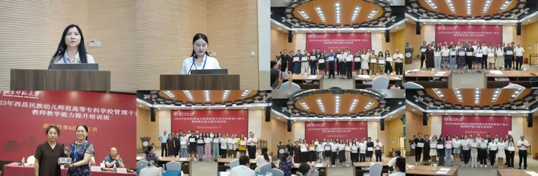 西昌民族幼专基础教学部主任高波和职业教育系教师王寒作为学员代表进行了发言。他们表示能有机会到全国顶尖的高等师范学府来学习培训,备感荣幸,承诺一定倍加珍惜这次培训机会,做到有所学、有所思、有所悟,用新的知识、新的观念充实自己,提高自身综合素质,为今后的工作打下坚实的基础,为西昌民族幼专的发展做出自己的贡献。